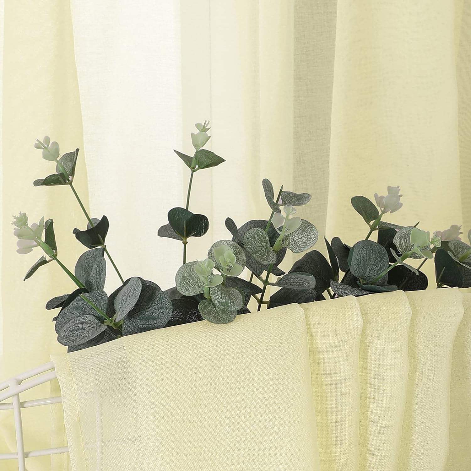 - Light Filtering: The linen look transparent yellow sheer curtains can allow the right amount of natural light through to bring your room a hazy and softer vision, keep you away from someone’s glance from outside and provide you some privacy.