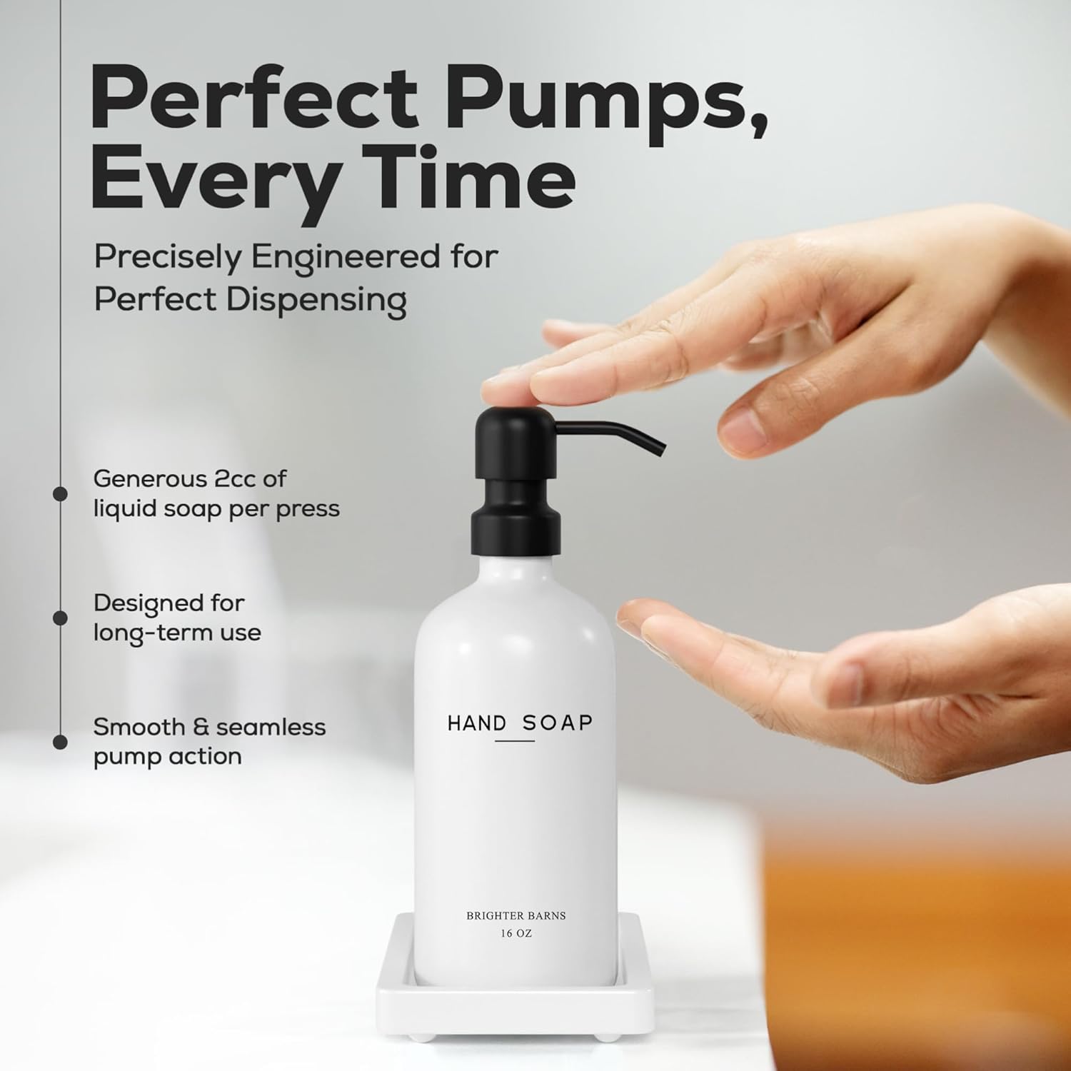 - AMERICAN DESIGN, UNCOMPROMISING QUALITY - Crafted with meticulous attention to detail, our aesthetic glass soap dispenser with pump set features 2 robust 16oz glass bottles, corrosion-proof 304G stainless steel pumps, and a stain-resistant ceramic tray. All designed in the USA to provide unbeatable quality and enduring style that you can trust.
