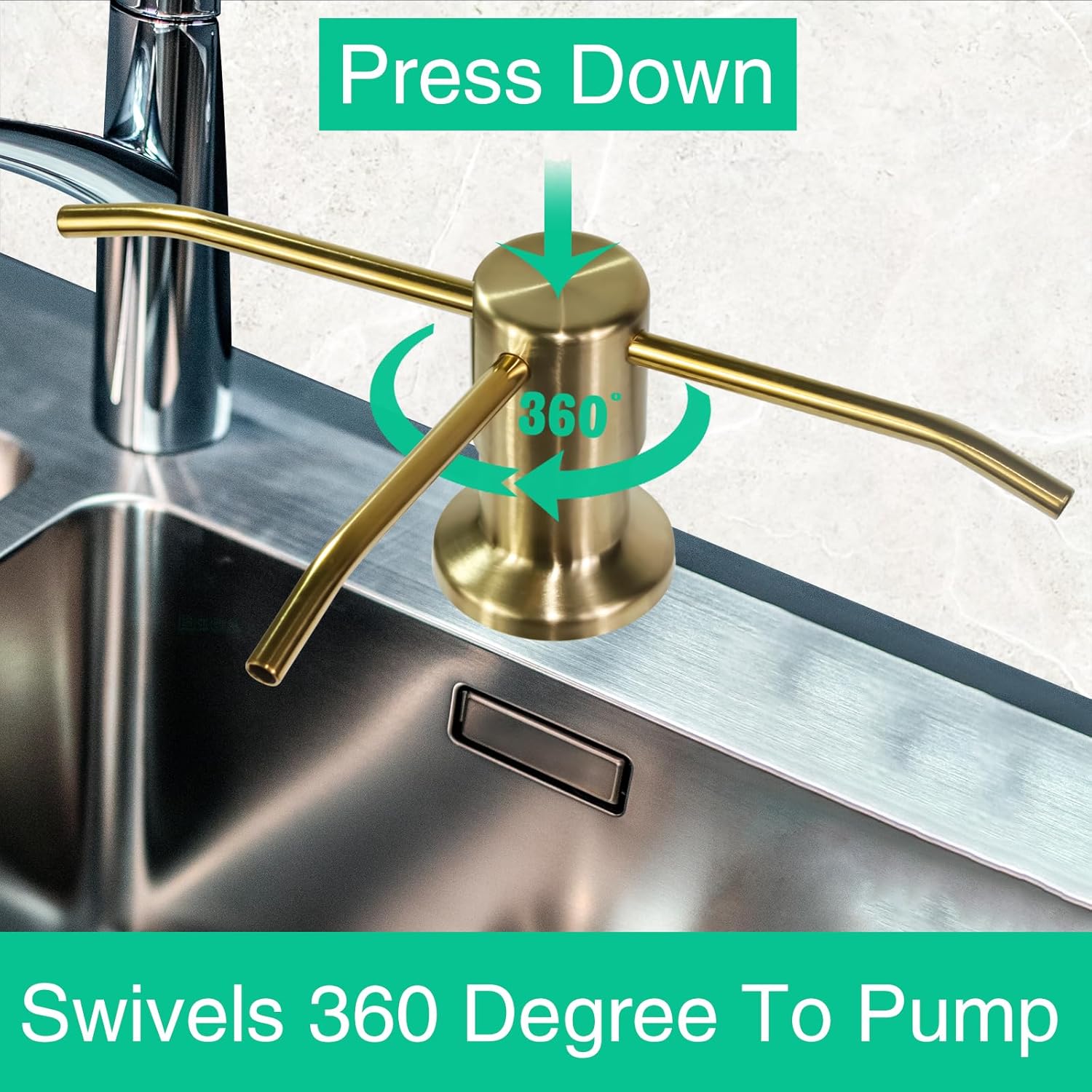 Soap Dispenser for Kitchen Sink, Built in Sink Soap Dispenser, Countertop Soap Dispenser Pump with 47" Extension Tube kit, No Need to Fill Little Bottle Again, Golden