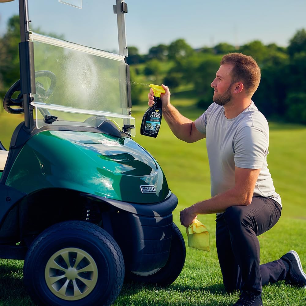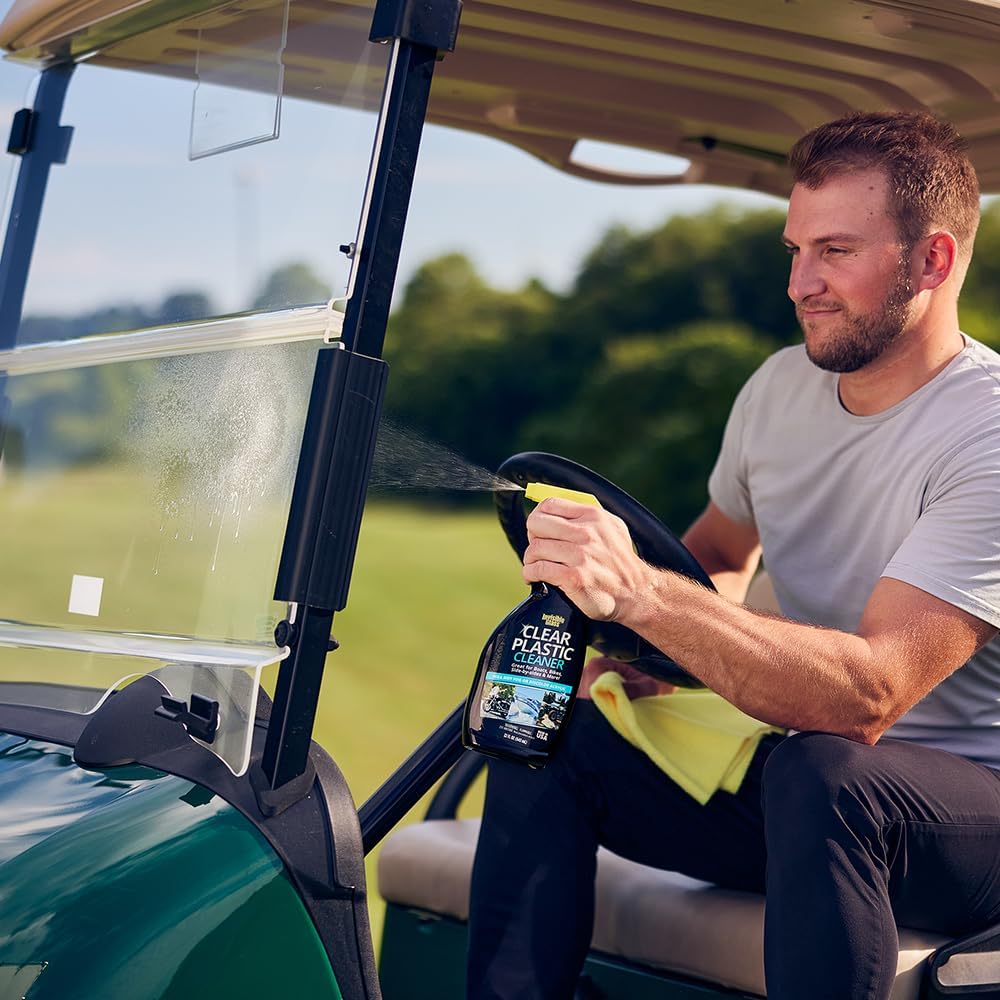 - PLASTIC SURFACE CLEANER: Safely cleans acrylic and vinyl windows, windshields, helmet visors, and more. Leaves no streaks or haze on any clear plastic surface, including aircraft windows, soft-top windows, golf cart windshields, and more.