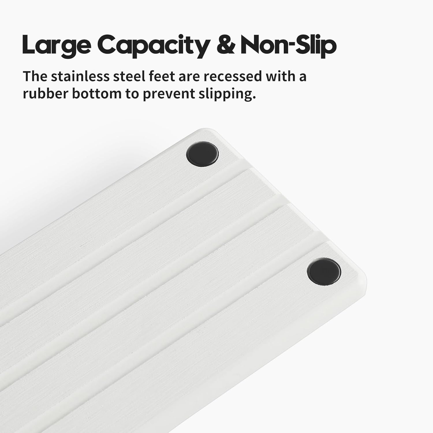 - 【Size and Capacity】10"L x 4"W x 1"H.This sink tray has a larger capacity due to the recessed feet. The 4 feet are made of high-grade stainless steel material with non-slip rubber, rust-proof. The color is not pure white, but closer to ivory.