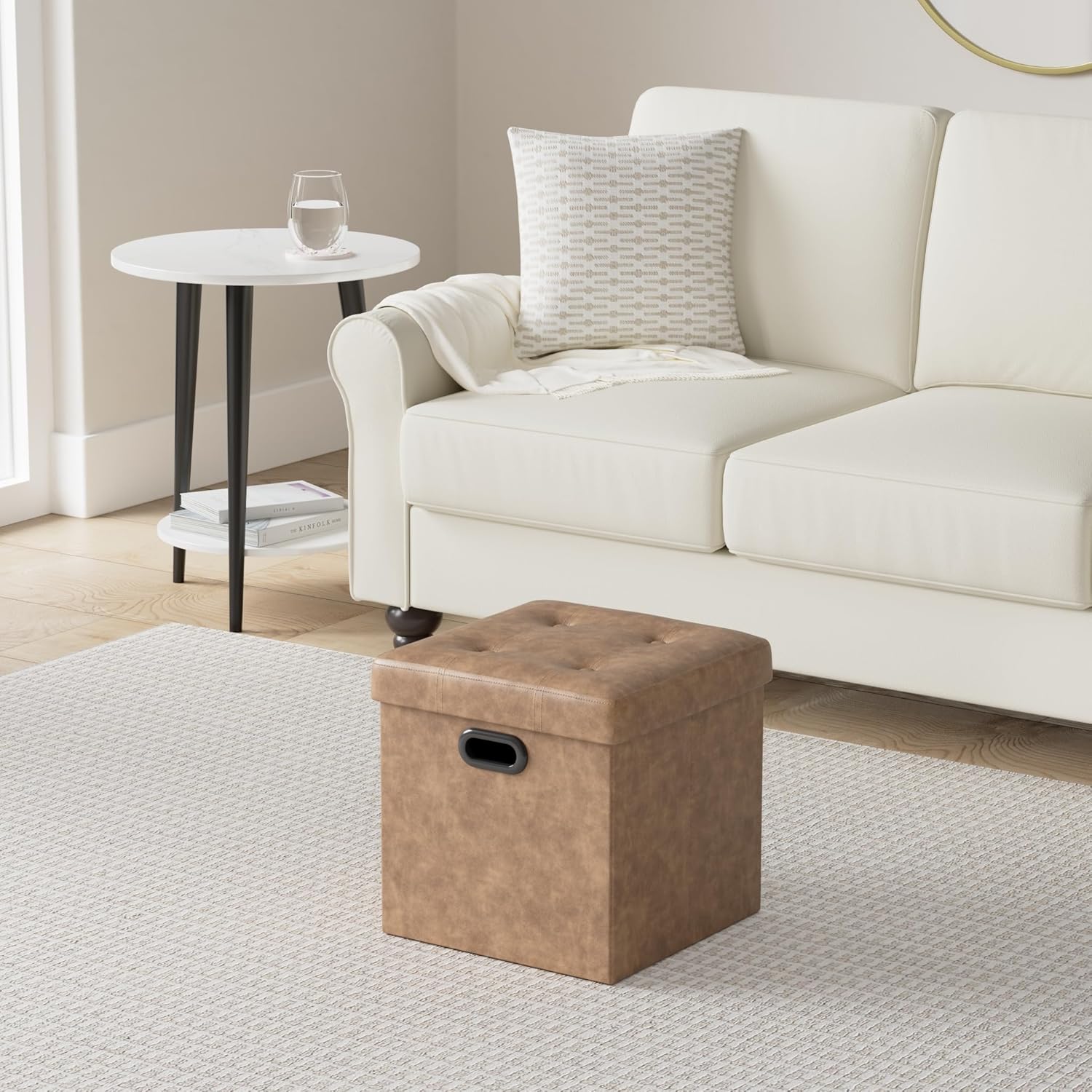 - 【VERSATILE & PORTABLE】This storage ottoman can serve as a storage box, footstool, or coffee table. The side grommet handles enable you to easily carry it to your desired location, whether it's the living room, bedroom, or foyer