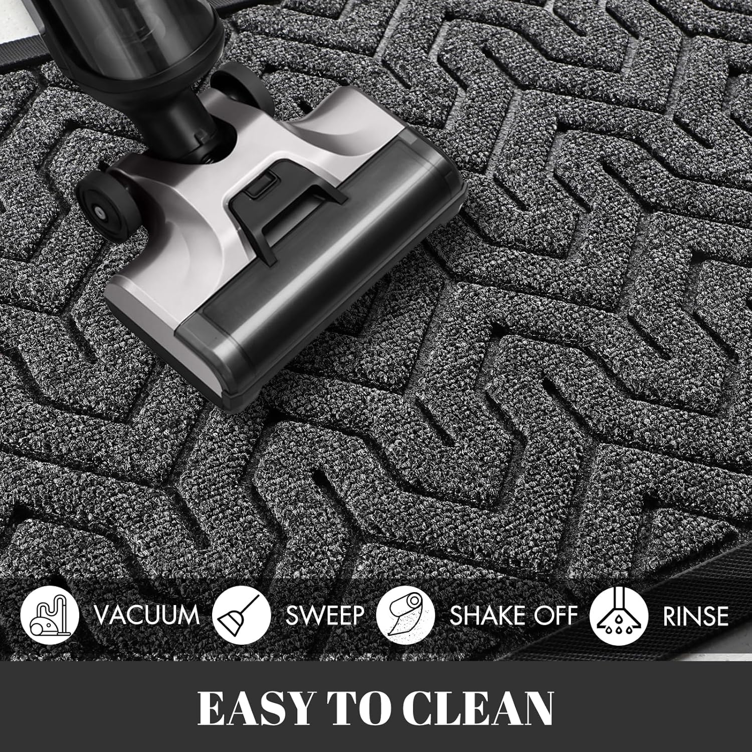 - Superior Dust Trapping & Waterproof: Featured deep Y-pattern grooves, the front door mat effectively scrapes off mud, dust and debris from shoe soles, keeping dirt outside your home. Made of high-quality polypropylene, this mat is waterproof and holds up perfectly even after rain. Its strong structure withstands heavy foot traffic without losing shape or functionality