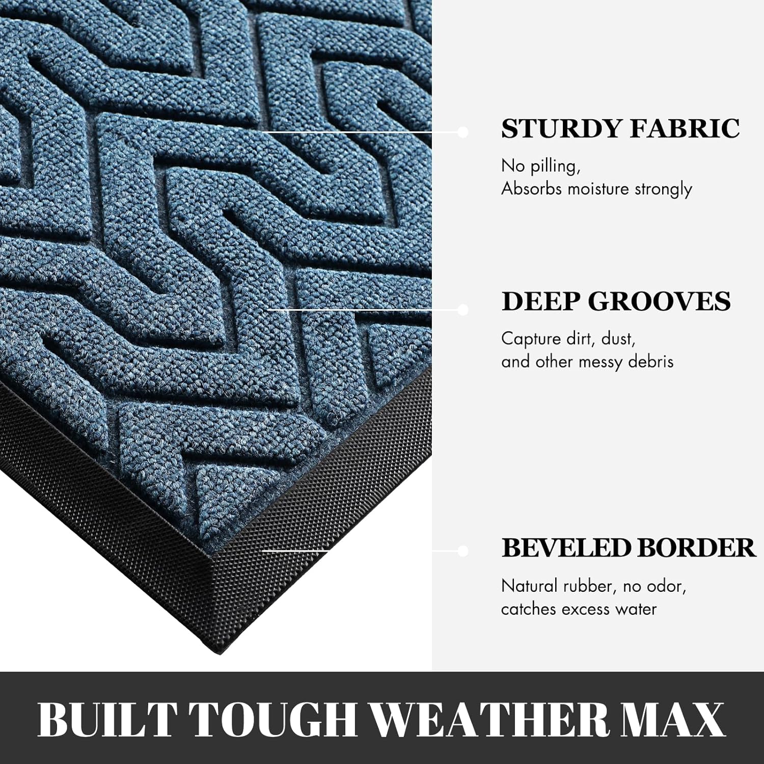 - Superior Dust Trapping & Waterproof: Featured deep Y-pattern grooves, the front door mat effectively scrapes off mud, dust and debris from shoe soles, keeping dirt outside your home. Made of high-quality polypropylene, this mat is waterproof and holds up perfectly even after rain. Its strong structure withstands heavy foot traffic without losing shape or functionality