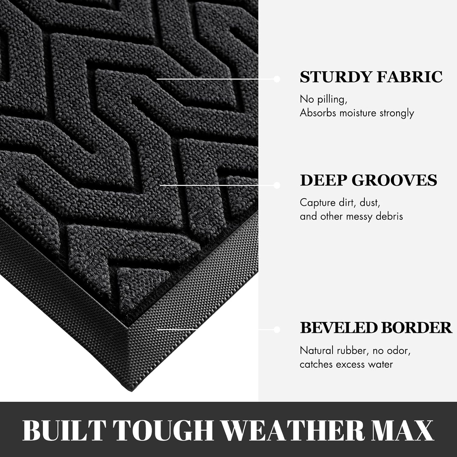 - Superior Dust Trapping & Waterproof: Featured deep Y-pattern grooves, the front door mat effectively scrapes off mud, dust and debris from shoe soles, keeping dirt outside your home. Made of high-quality polypropylene, this mat is waterproof and holds up perfectly even after rain. Its strong structure withstands heavy foot traffic without losing shape or functionality