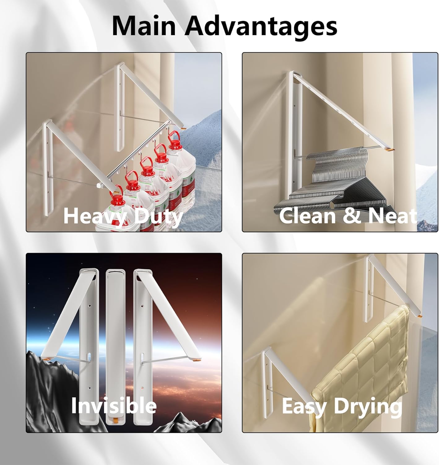 - 【Wall Mounted Clothes Drying Rack】: 100% high quality metal, water-proof, durable and sturdy, load-bearing up to 60 pounds.