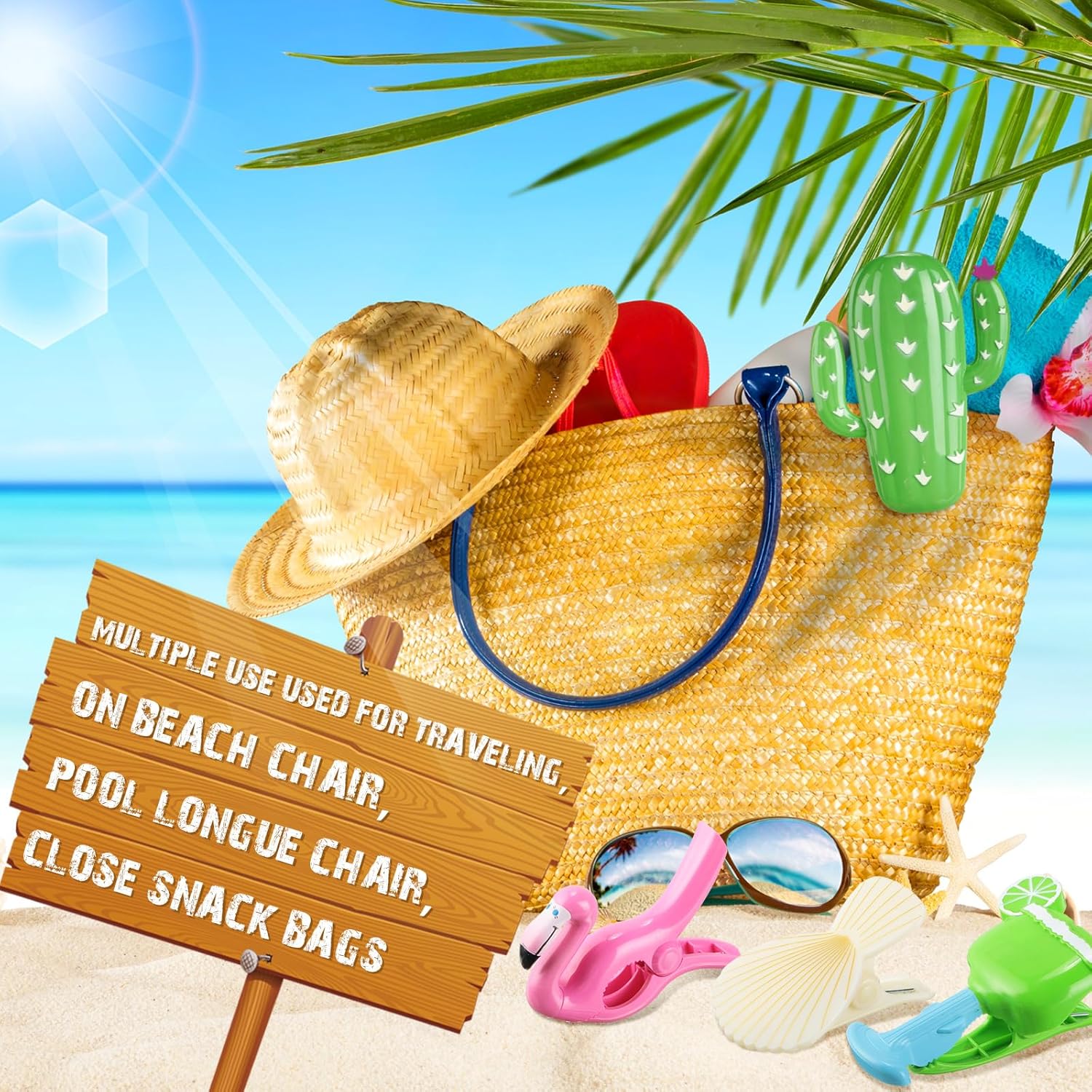 Rtteri 16 Pcs Beach Towel Clips for Beach Chairs Cute Towel Holder Cruise Clothes Pins for Lounge Chair Patio Pool, Assorted Style(Vivid)