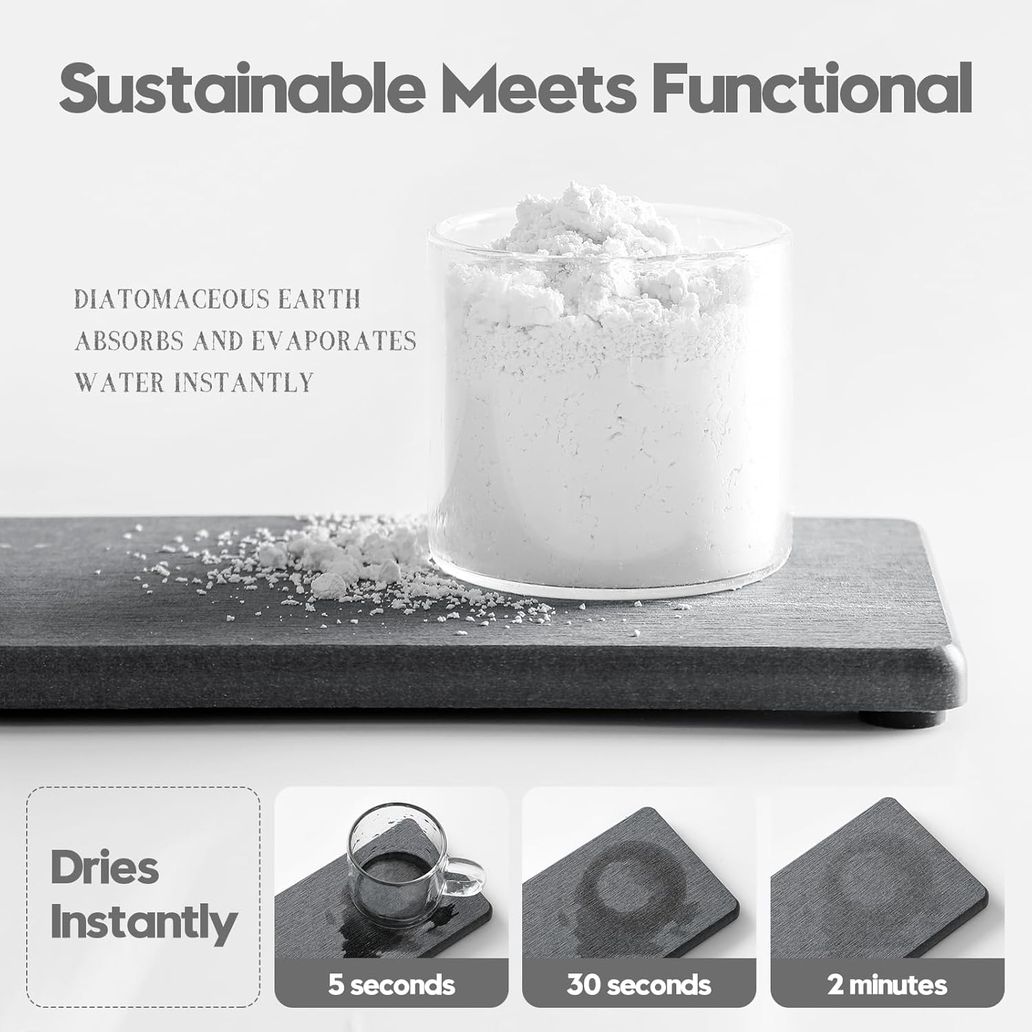 - 【Sustainable Materials】Natural diatomaceous earth dries instantly thanks to its ability to evaporate moisture. Safe, Sustainable and Long-lasting