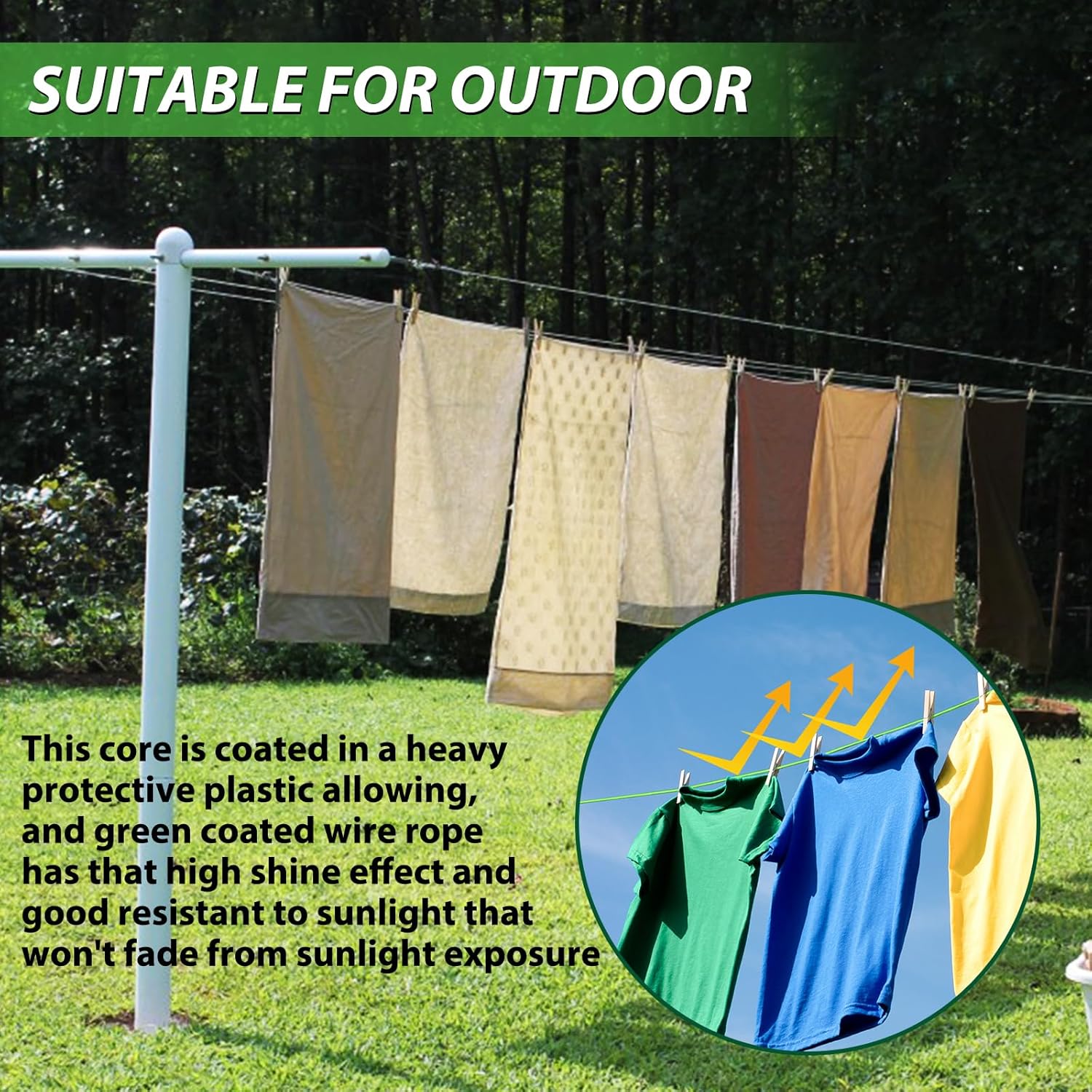 - PVC Coated Design: This core is coated in a heavy protective plastic allowing for resistance to harsh weather elements which means that you can easily use as clothesline outside without any worries. And the smooth PVC surface wipes clean within seconds