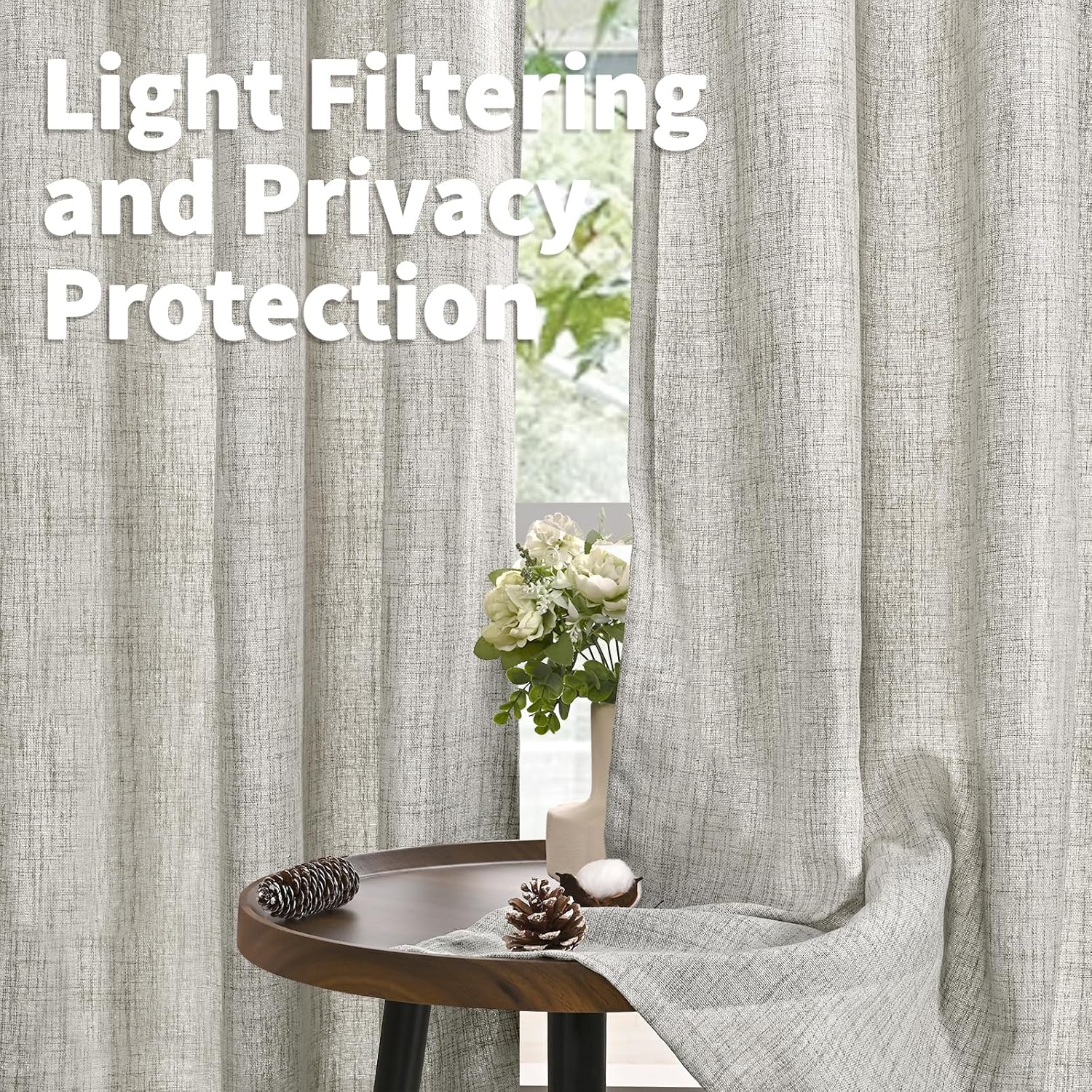 - Privacy Protection: Different from ordinary sheer drapes, our linen curtains are woven with a firmer and thicker texture that filters harsh light, while nice thickness helps provide privacy. Subtly balancing light and privacy that allow you to enjoy your leisure time.