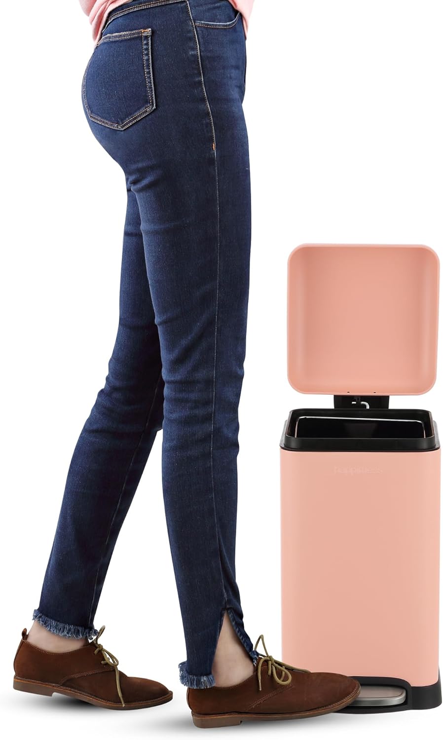 happimess HPM1012G Betty Retro Mini 3.2-Gallon Step-Open Trash Can, Fingerprint Resistant, Modern, Minimalistic for Home, Kitchen, Laundry Room, Office, Bedroom, Bathroom, Flamingo Pink