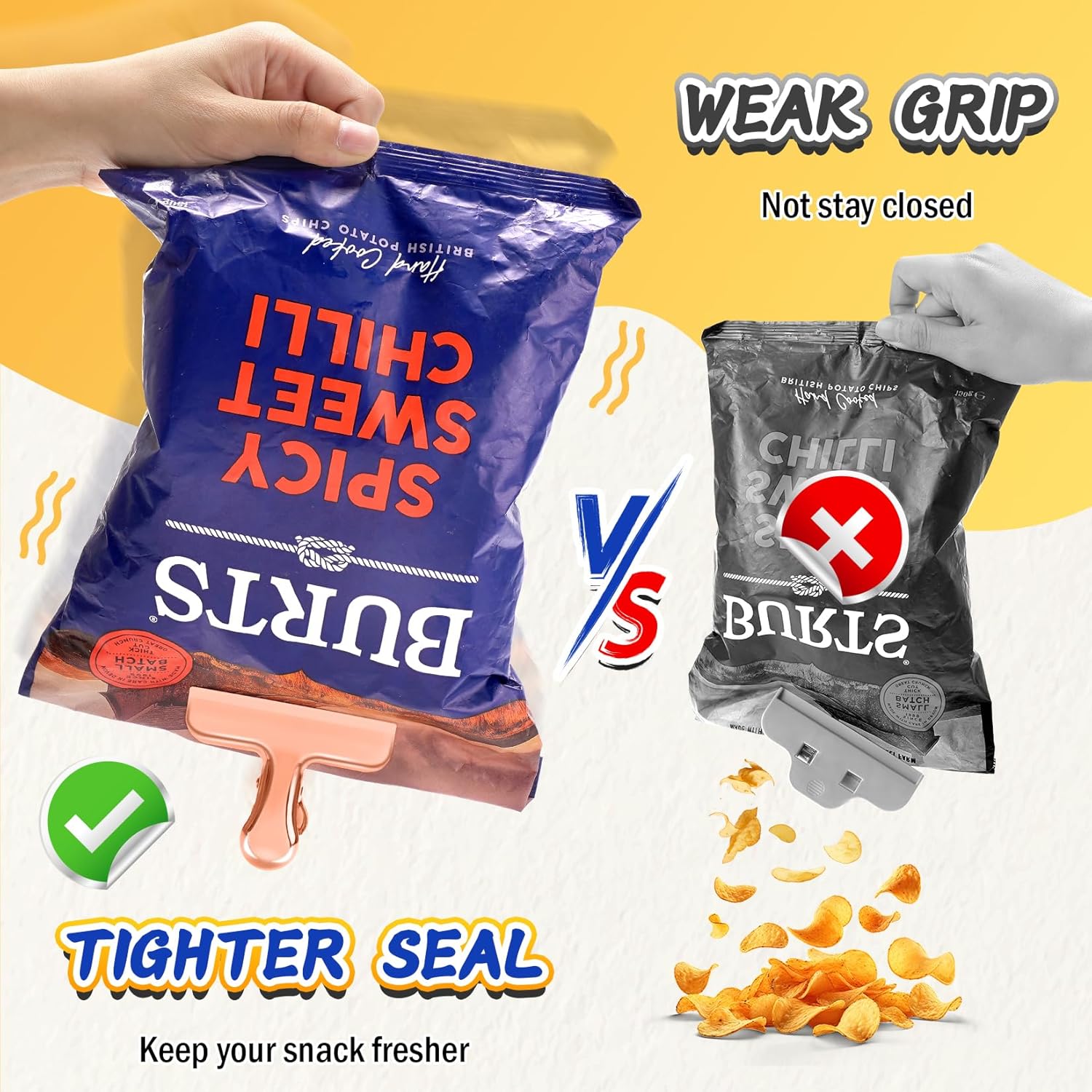 - 【Secure Seal】Made from stainless steel, including the spring, these chip bag clips ensure a tight seal for various bags, from snacks to frozen vegetables.