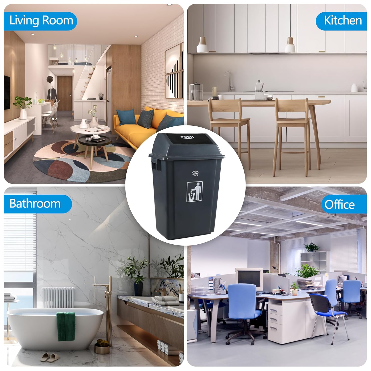 - This trash can is made of high-quality materials and designed to withstand the requirements of daily use. Its sturdy structure ensures long-lasting performance, making it a reliable choice for indoor and outdoor environments.