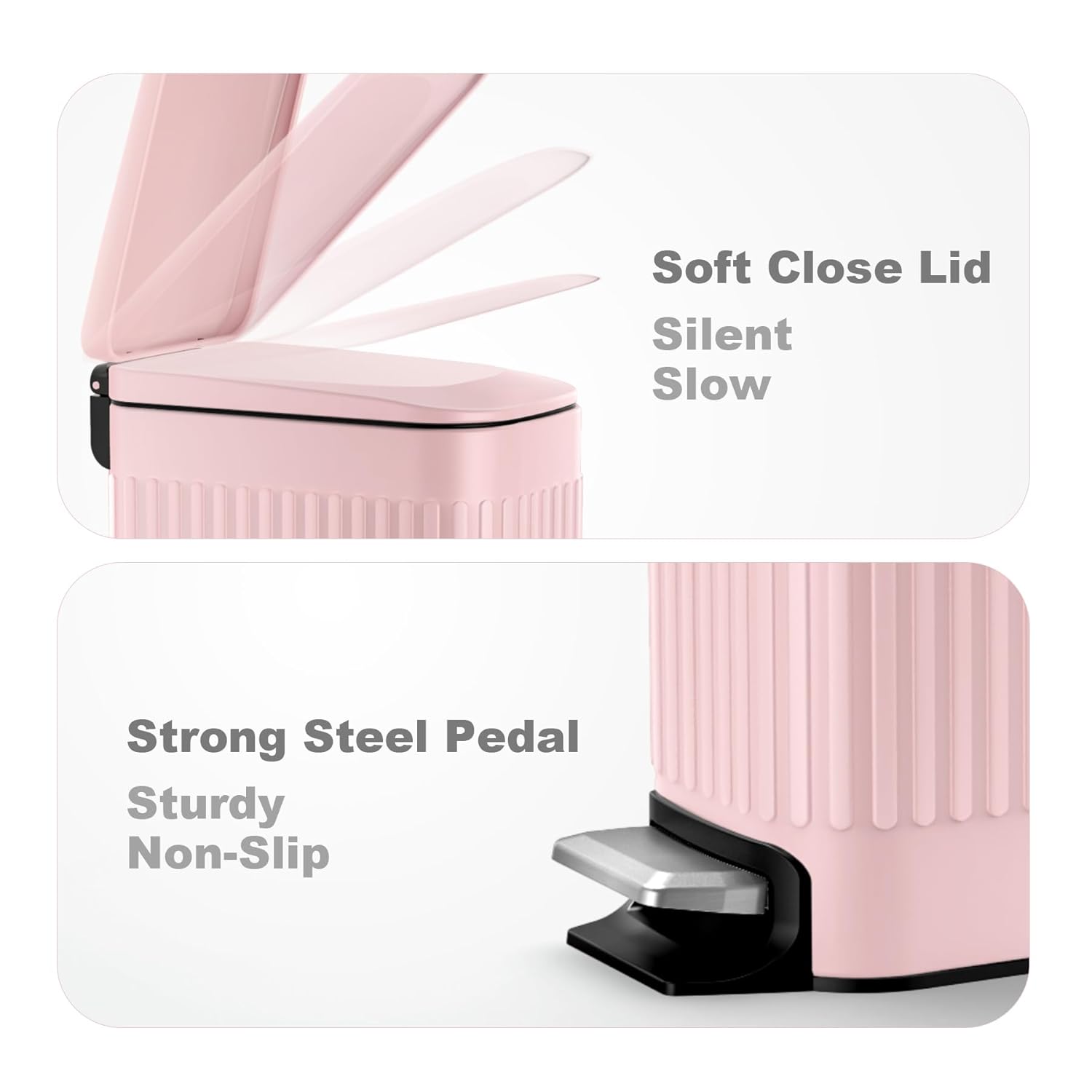 - Pink Room Decor - The small pink garbage can is made of thickened premium grade stainless steel. The unique embossed design makes the garbage can have a cute and elegant appearance, which is attractive and decorative while being practical.