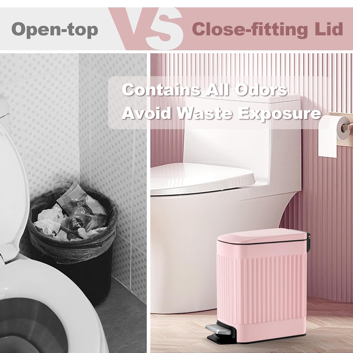 TrashAid Pink Bathroom Trash Can, 1.6 Gallon Stainless Steel Small Garbage Can with Lid, Step Pedal, Cute Wastebasket for Bathroom, Office, Bedroom, RV, Pink