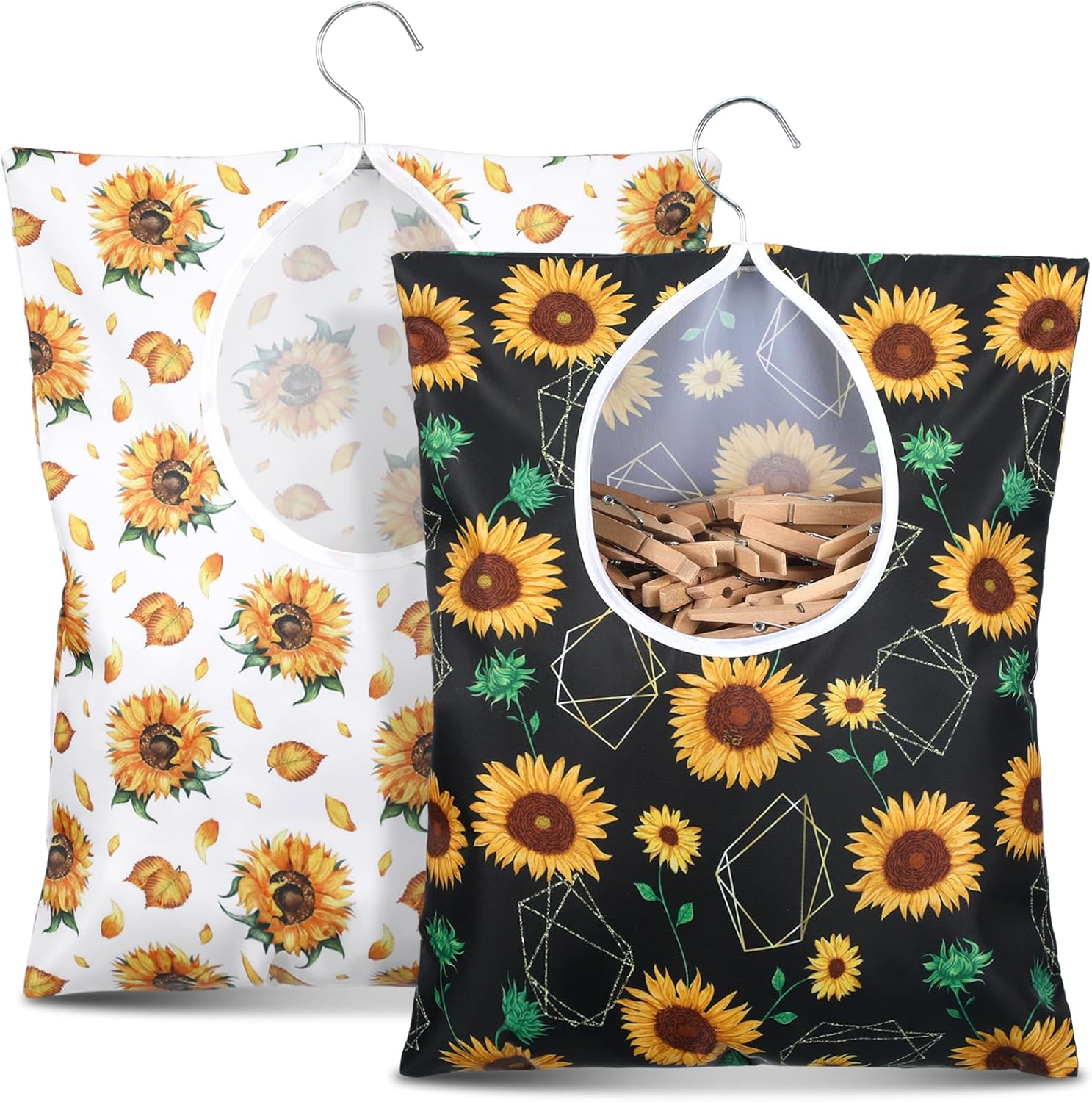 - Summer Theme: package includes 2 pieces of clothespin bags with hanger in different summer designs, one is decorated with sunflower pattern and white background and the other is decorated with sunflower pattern and black background, can add charm to your home; Proper quantity can satisfy your different daily use and replacement needs