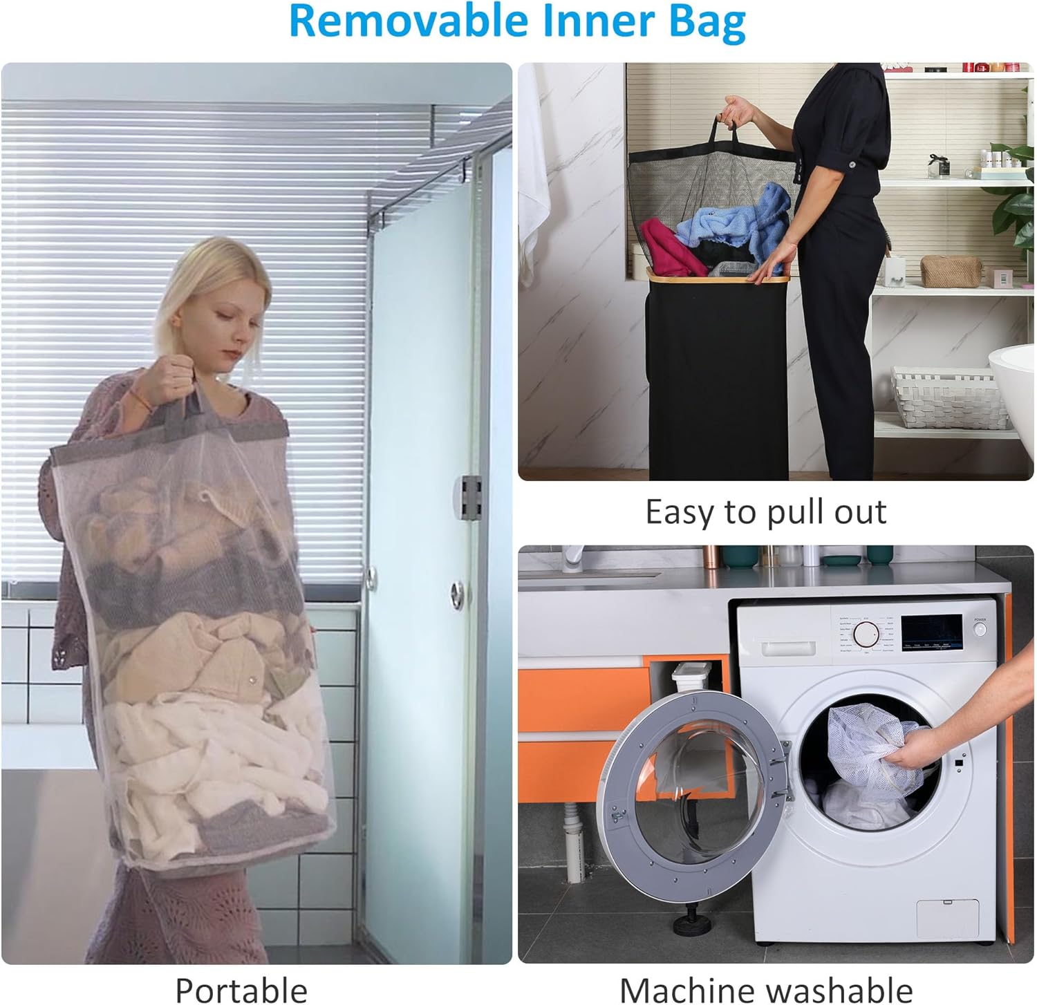 - 【Easy Sorting & Convenient】: The laundry basket has two compartments for easy sorting of dark and light clothes. It also comes with a removable inner mesh bag, you can take the clothes out without moving the whole hamper.