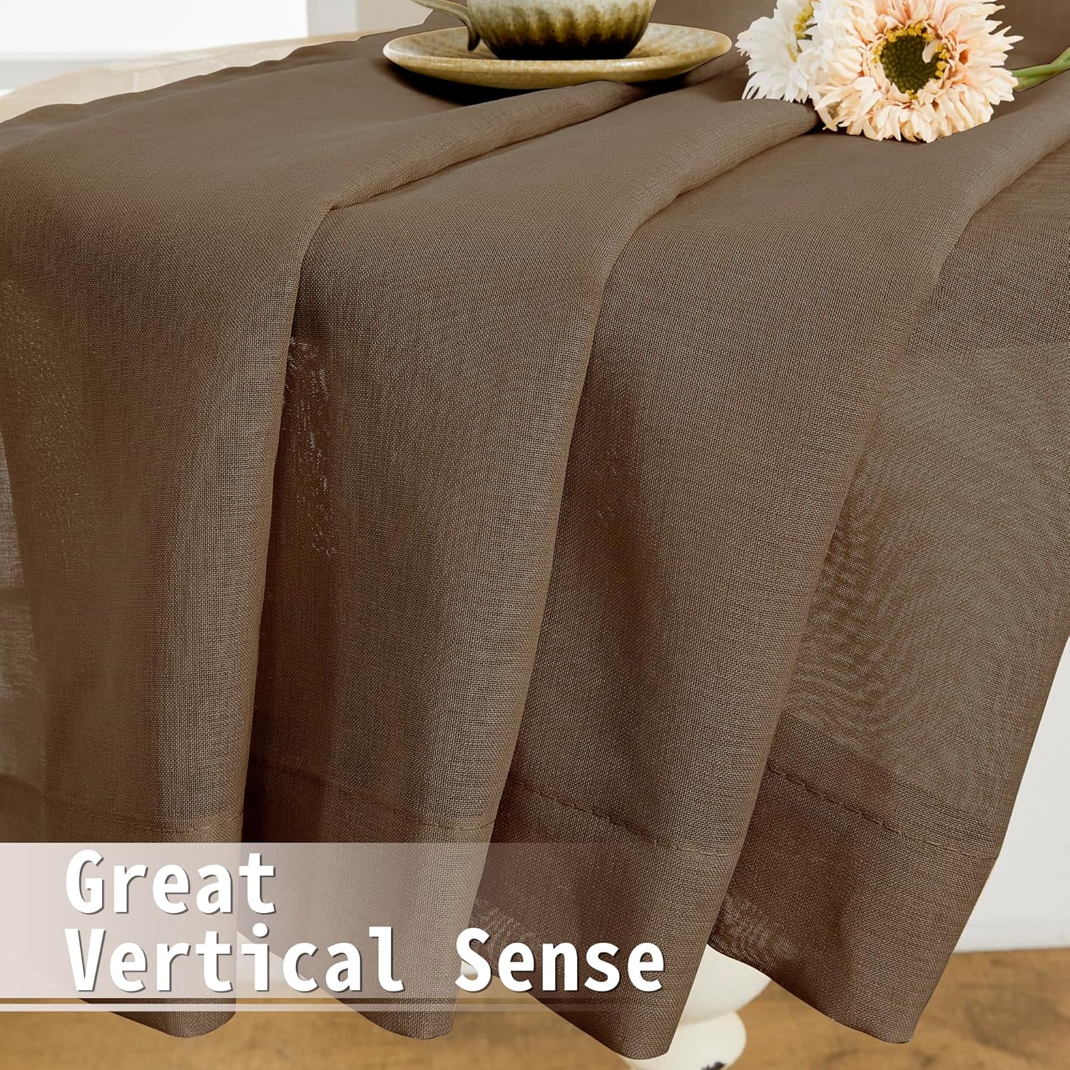 Tollpiz Sheer Door Curtain Closet Linen Textured Curtains Sheer Doorway Light Filtering Voile Patio Glass Door Rod Pocket Curtain French Door, 54 x 72 inches Long, Brown, Set of 1 Panel