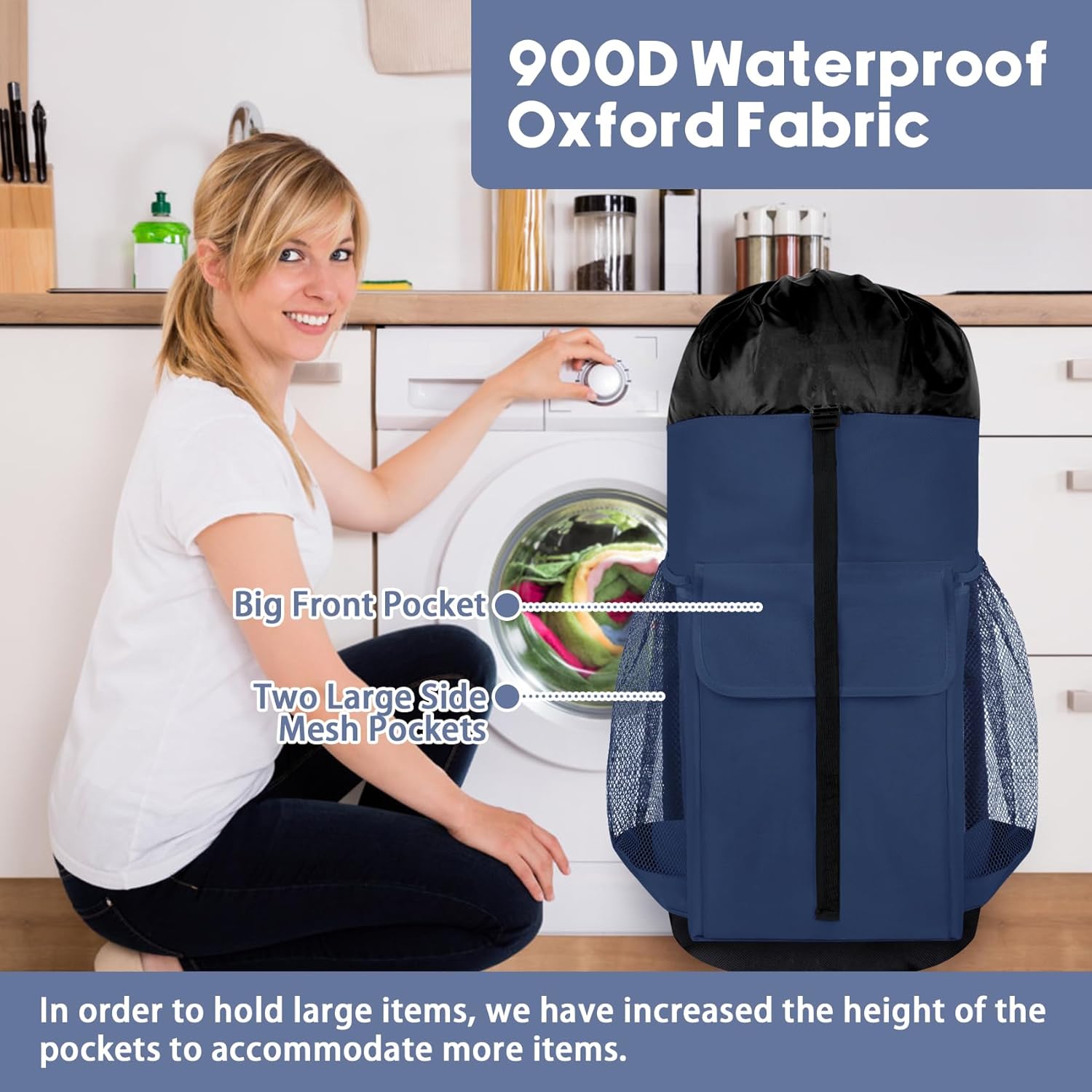 - Premium Material : The laundry hamper is made of premium material 900D waterproof oxford fabric, lightweight; Reinforced stitching on each joint can keep strong load-bearing capacity, which makes the laundry backpack bag longer lifespan and durability