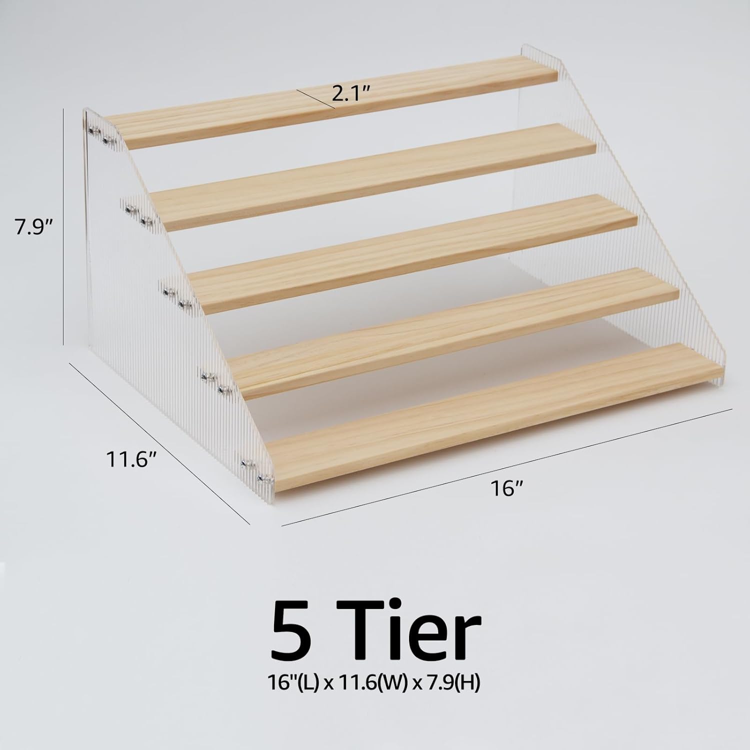 - Elegant & Sturdy: Risers display stands constructed from high-quality pine wood and corrugated acrylic, making it both aesthetically pleasing and fashionable, as well as durable and resistant to deformation, the spice shelf is a beautiful and robust addition to any space