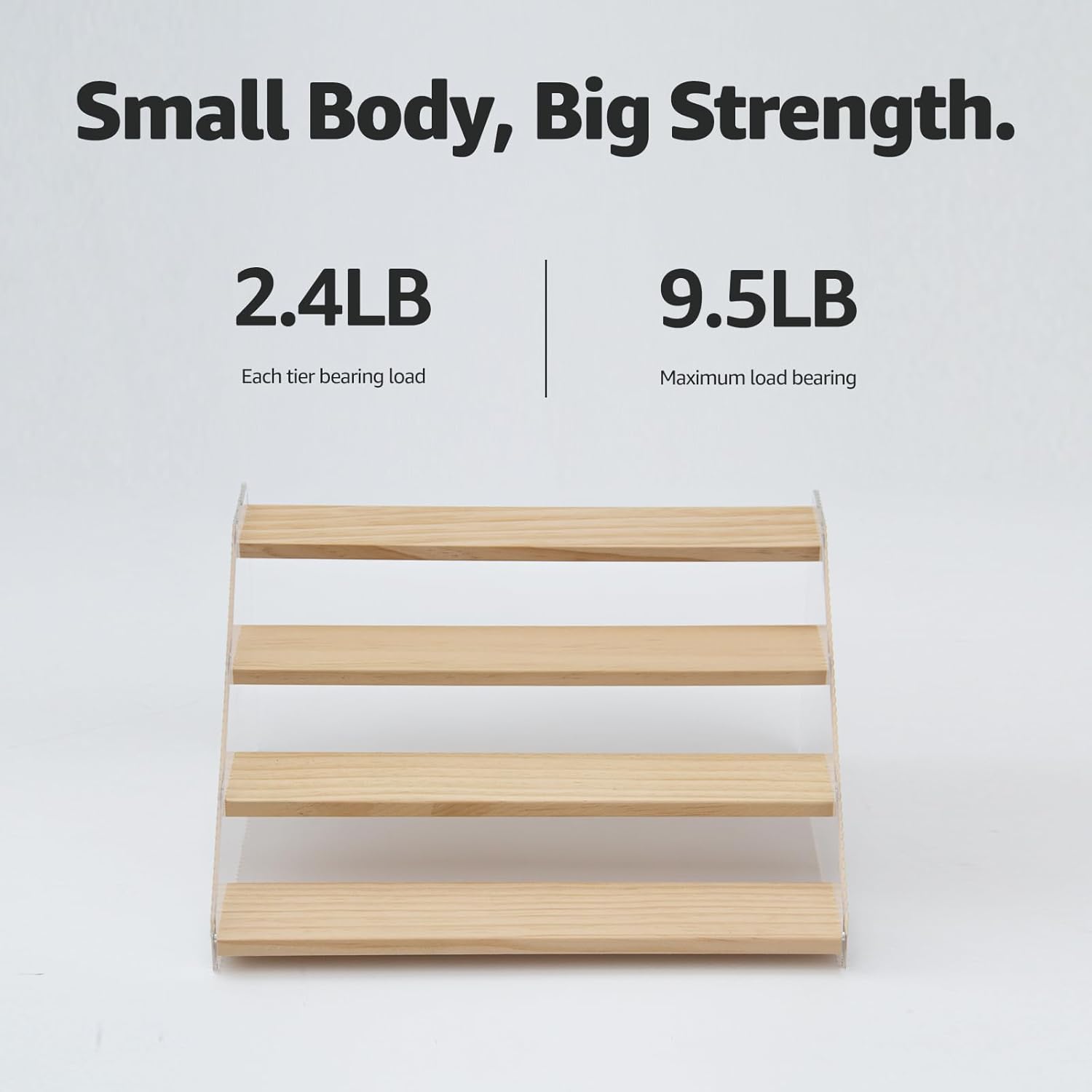 - Elegant & Sturdy: Risers display stands constructed from high-quality pine wood and corrugated acrylic, making it both aesthetically pleasing and fashionable, as well as durable and resistant to deformation, the spice shelf is a beautiful and robust addition to any space