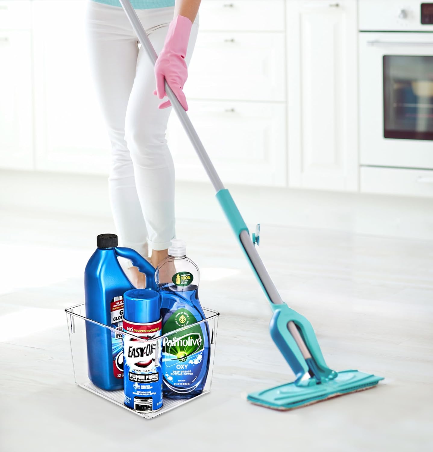 - Clear Cleaning Supplies Organizer: The Sorbus Clear Bins for Organizing make it convenient and easy to organize household essentials - Perfect for storing cleaning supplies under the sink - Store and organize items in the kitchen, bathroom, pantry, office closet, and more