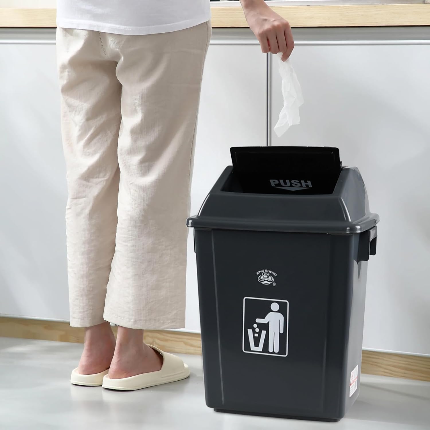 - Swing lid design, easy to use by gently pushing the cover when needed