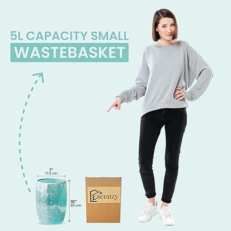 Escenzy Modern Bathroom Trash Can Mosaic Glass 5L | 7" x 10" | Decorative Small Garbage Can | Luxury Waste Basket for Restroom, Office, Bedroom & Kitchen | Shiny Turquoise Green Bathroom Accessories