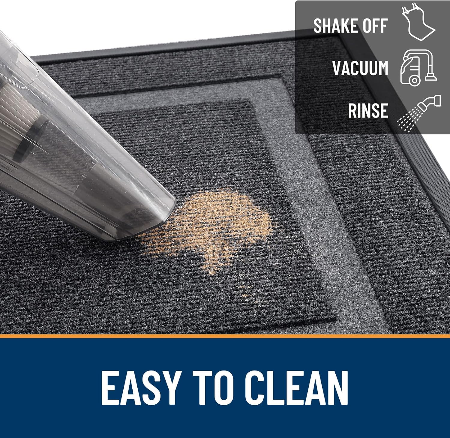 - [EASY TO CLEAN] The OLANLY front door mat is designed for quick and effective cleaning using a vacuum or traditional broom cleaning methods. Additionally, tapping and shaking the back of the doormat helps remove residual debris. For a deeper clean, rinse it with a garden hose and hang the mat in a ventilated place or dry it in a dryer. This versatile cleaning method ensures that your doormat stays clean and tidy, ready to welcome guests.