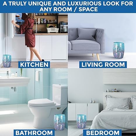 - Versatile Mosaic Glass Decor - Add a touch of glamour to any room with this small Trash Can, enhancing the ambiance in bathrooms, bedrooms, offices, kitchens, living rooms, or any open area.