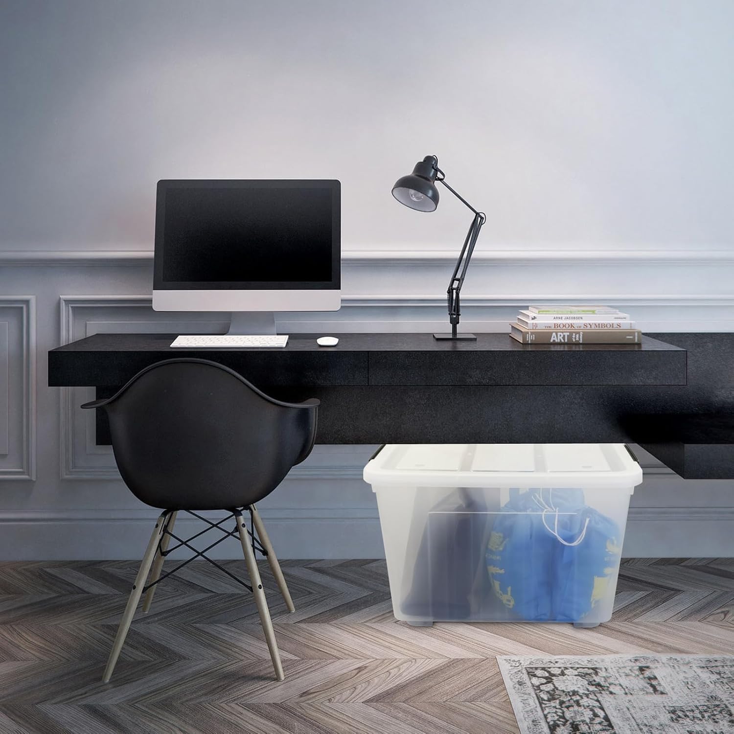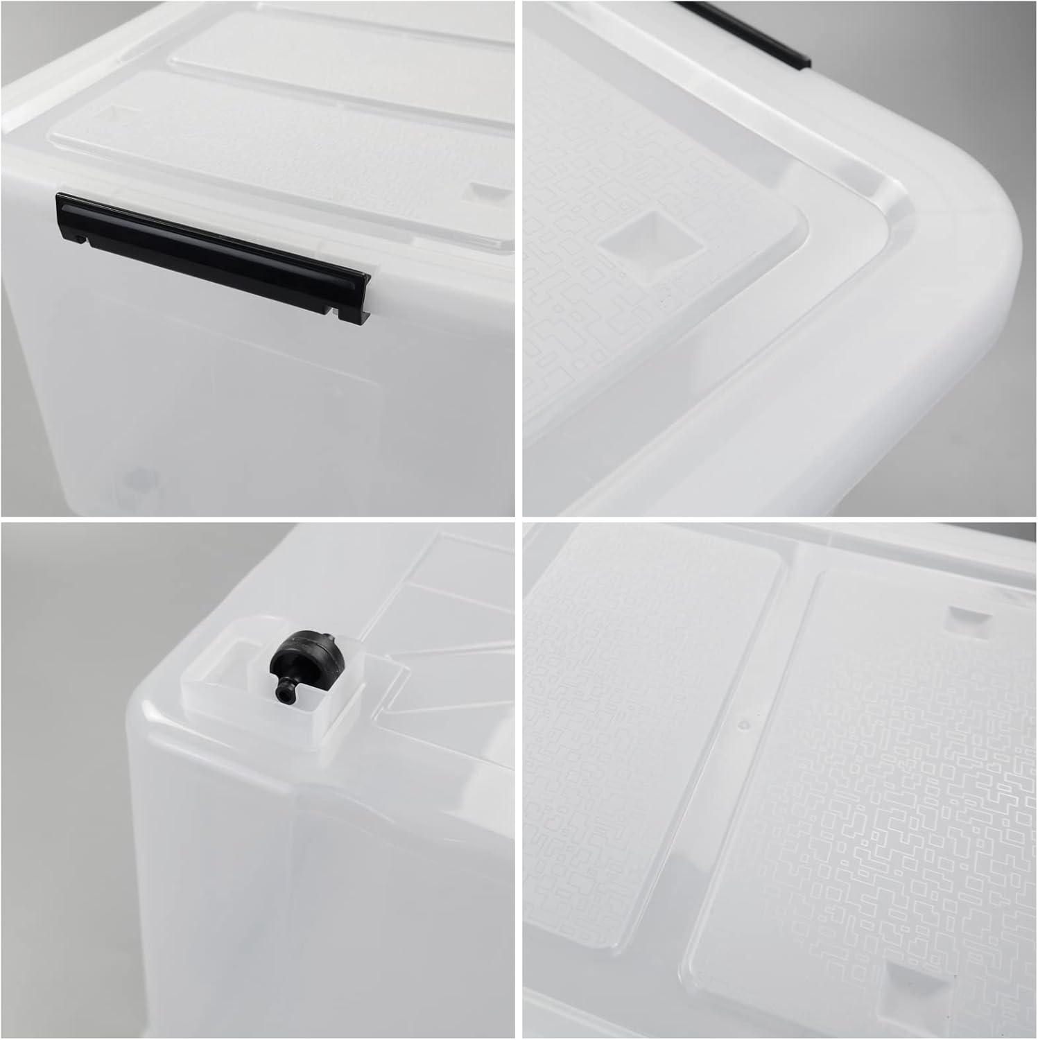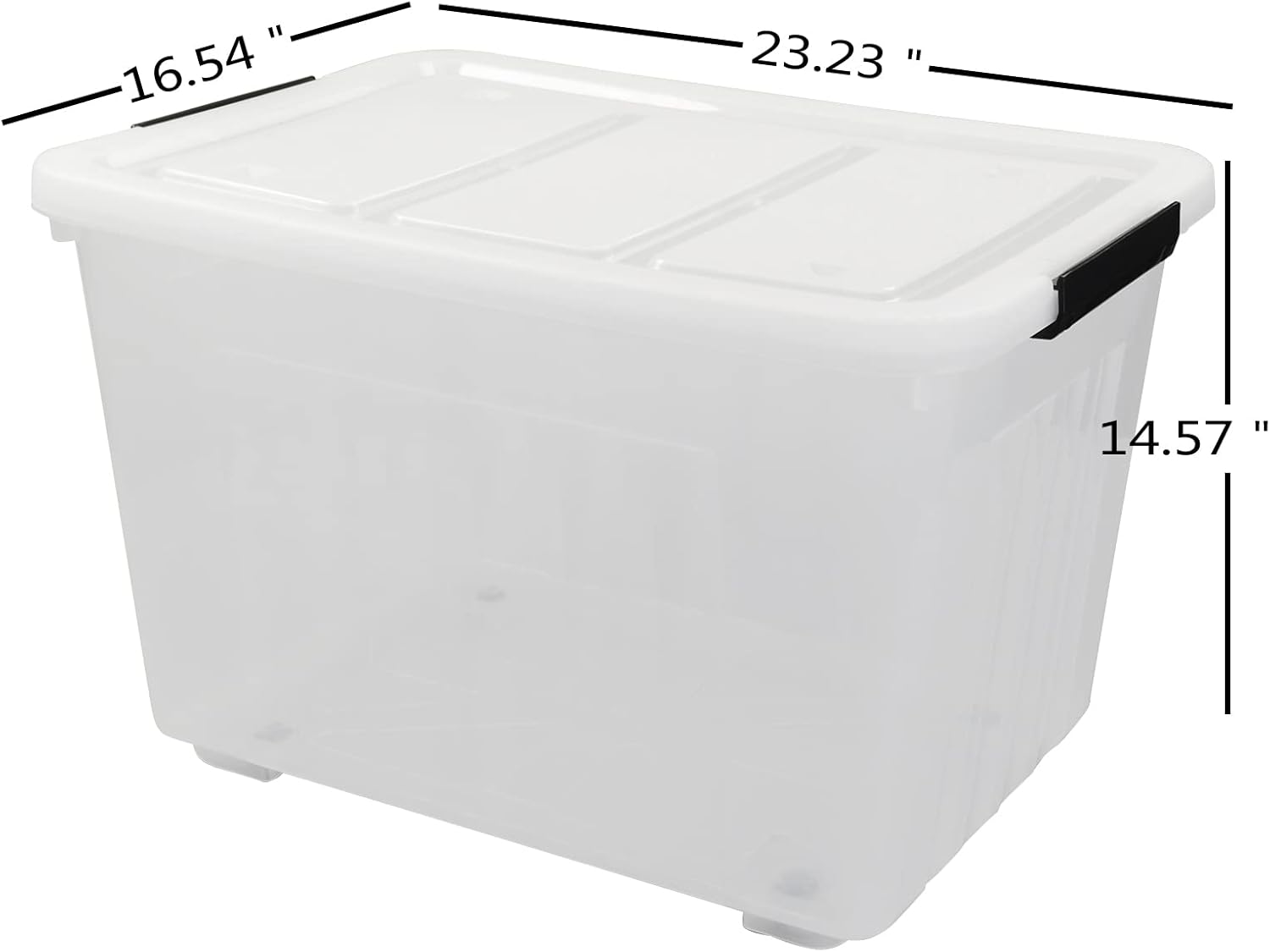 4 Packs 70L Large Plastic Storage Container with Wheels and Latching Lid, Stackable Storage Containers Bin, Clear