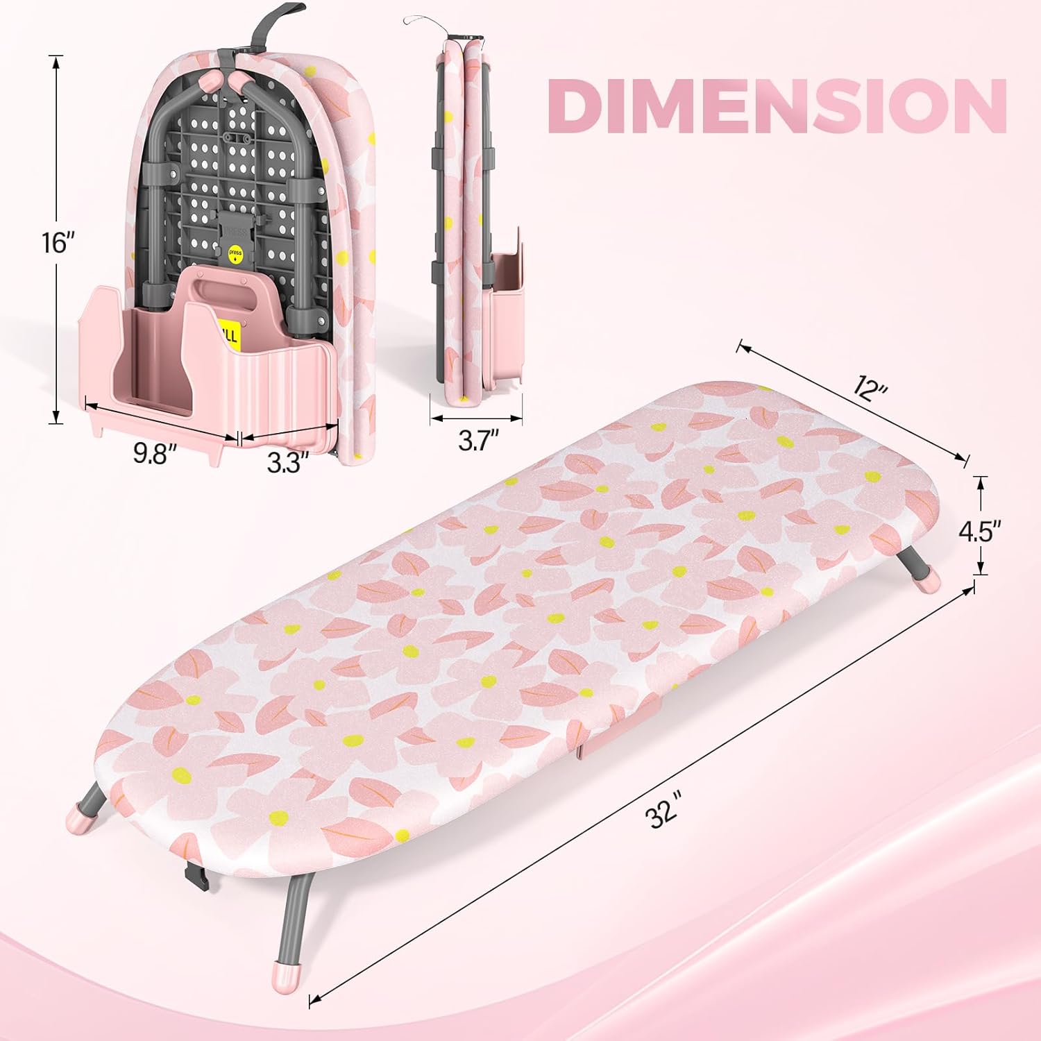 - IRON STORAGE - Table Top Folding Ironing Board with Iron holder to help you neatly organize your dorm room and make it look aesthetically pleasing. In addition, the small ironing board can be used as a laptop table or snack table(The iron is not included)