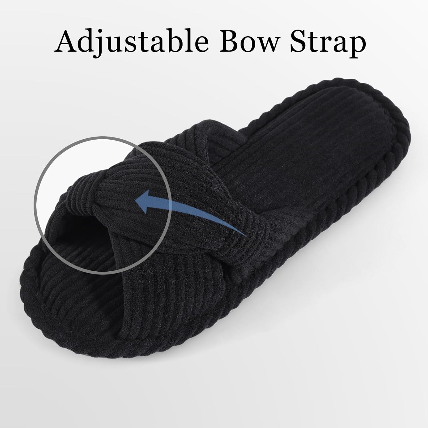 - Breathable Bow Slippers: Crafted from luxurious corduroy fabric, our stylish cross-band slippers are cute and functional, they are tied in in a unique and classic bow design, elegantly wrap around your feet while ensuring optimal ventilation to prevent sweating.