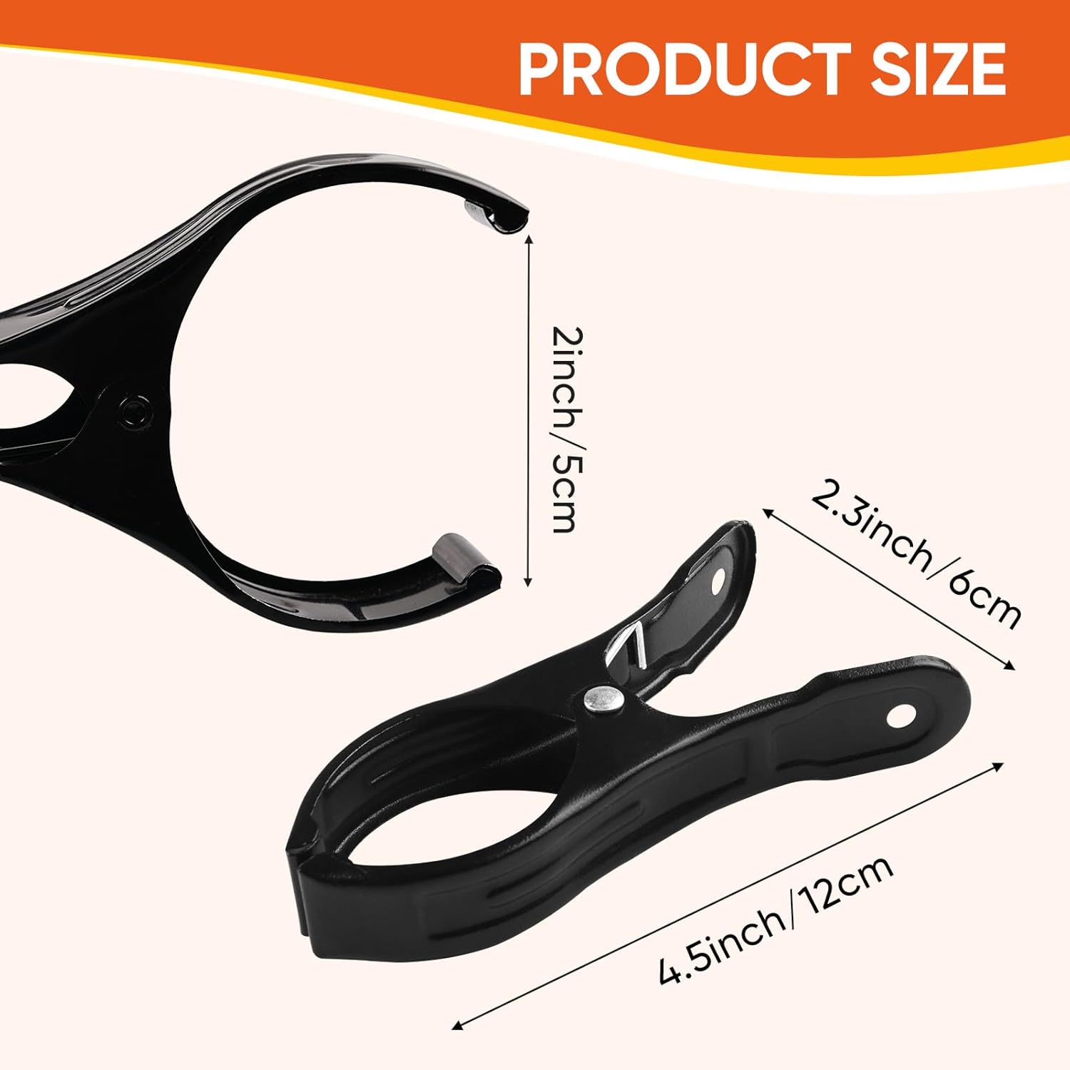 - Size: The beach clips are 4.5 inches long with a maximum opening of 2 inches, each one weighs only 25 grams, the thicker spring can provide good strength to clip towels, clothes and other items, effectively preventing items from being blown away by heavy wind and rain. The enlarged opening will fit most beach chairs, cruise ship railings and more.