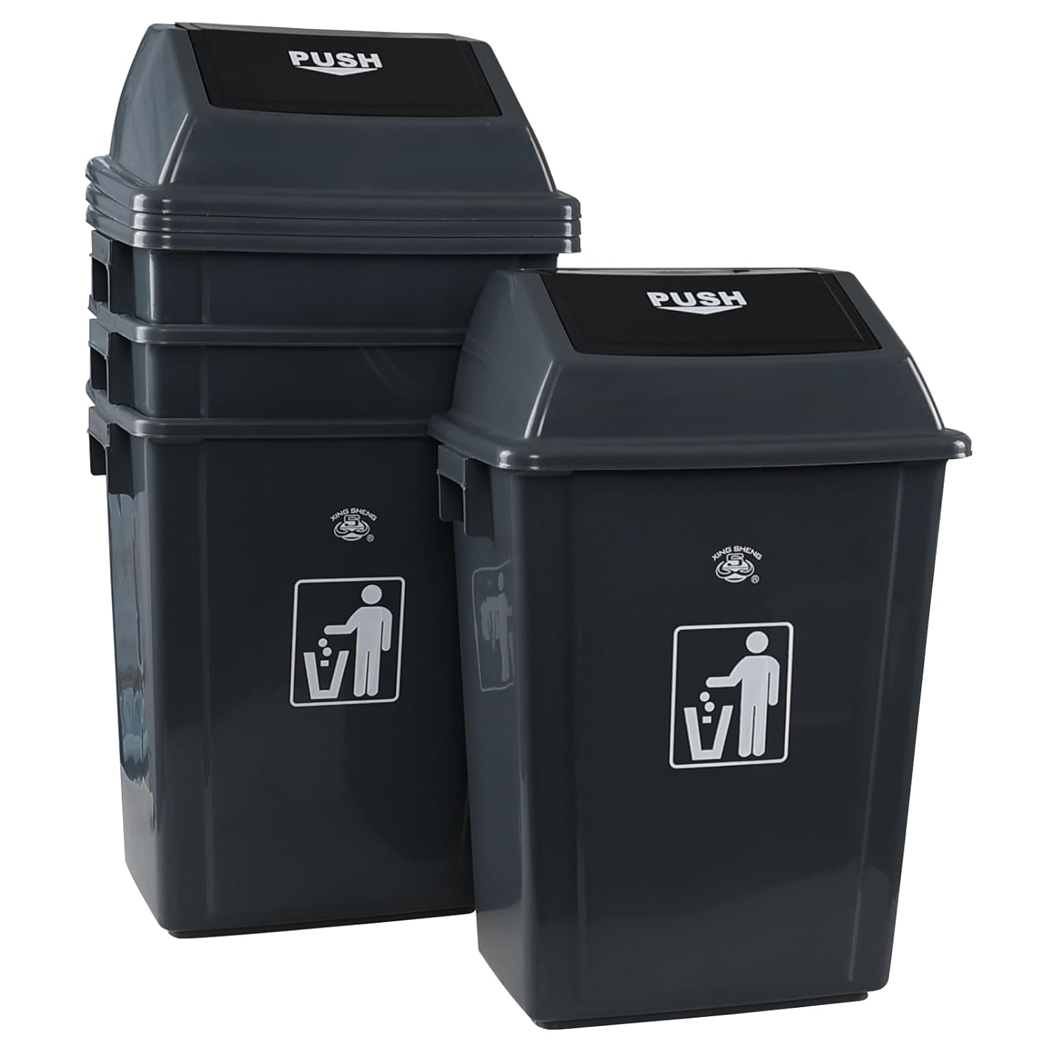 - Set of 4 gray plastic kitchen garbage can, each capacity is 18 gallon