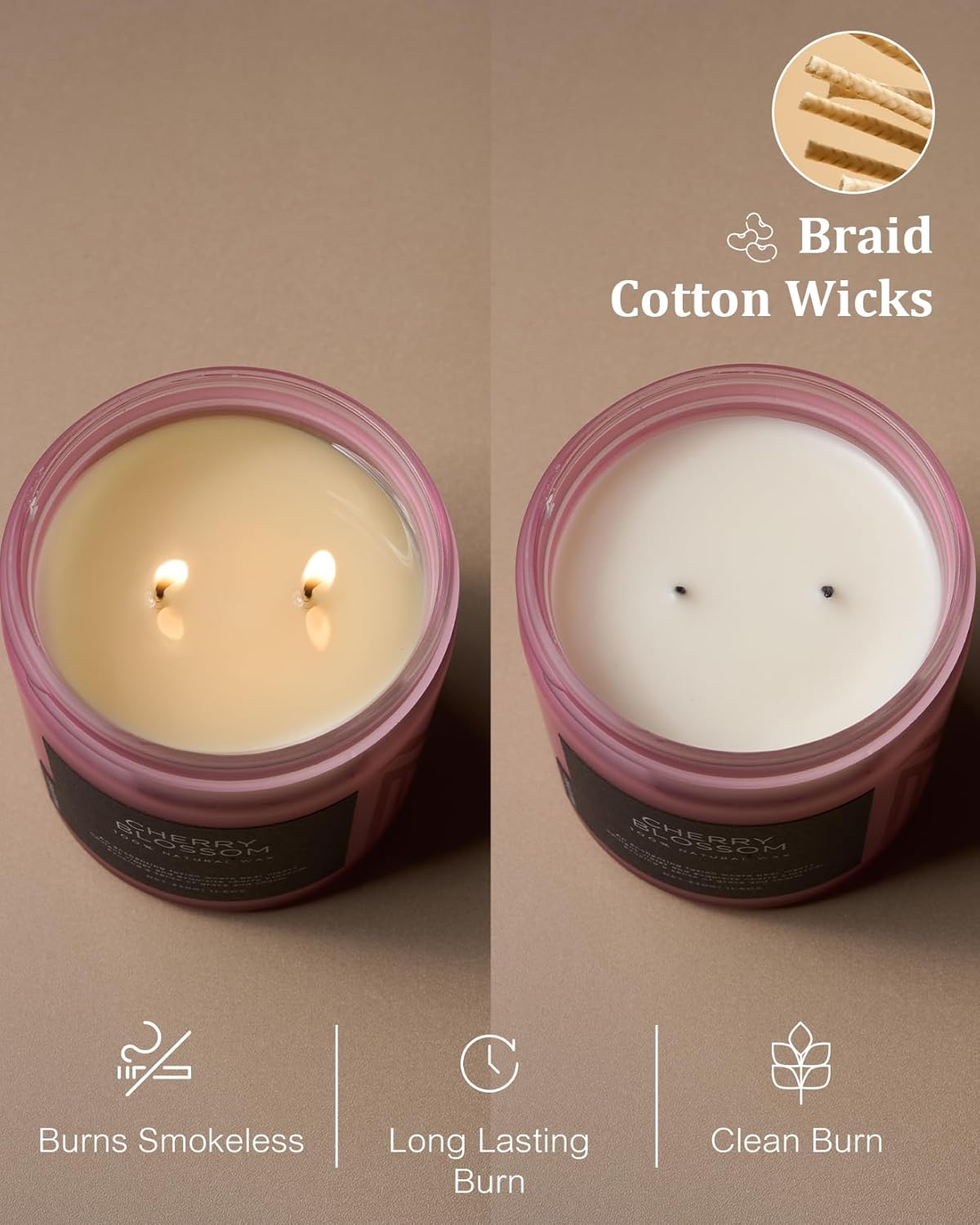M&SENSE Cherry Blossom Scented Spring Candle, 70 Hours Long Lasting Soy Wax 11.6oz Stress Relief Aromatherapy Candles, Romantic Gifts for Women, Glass Jar for Bedroom Decor