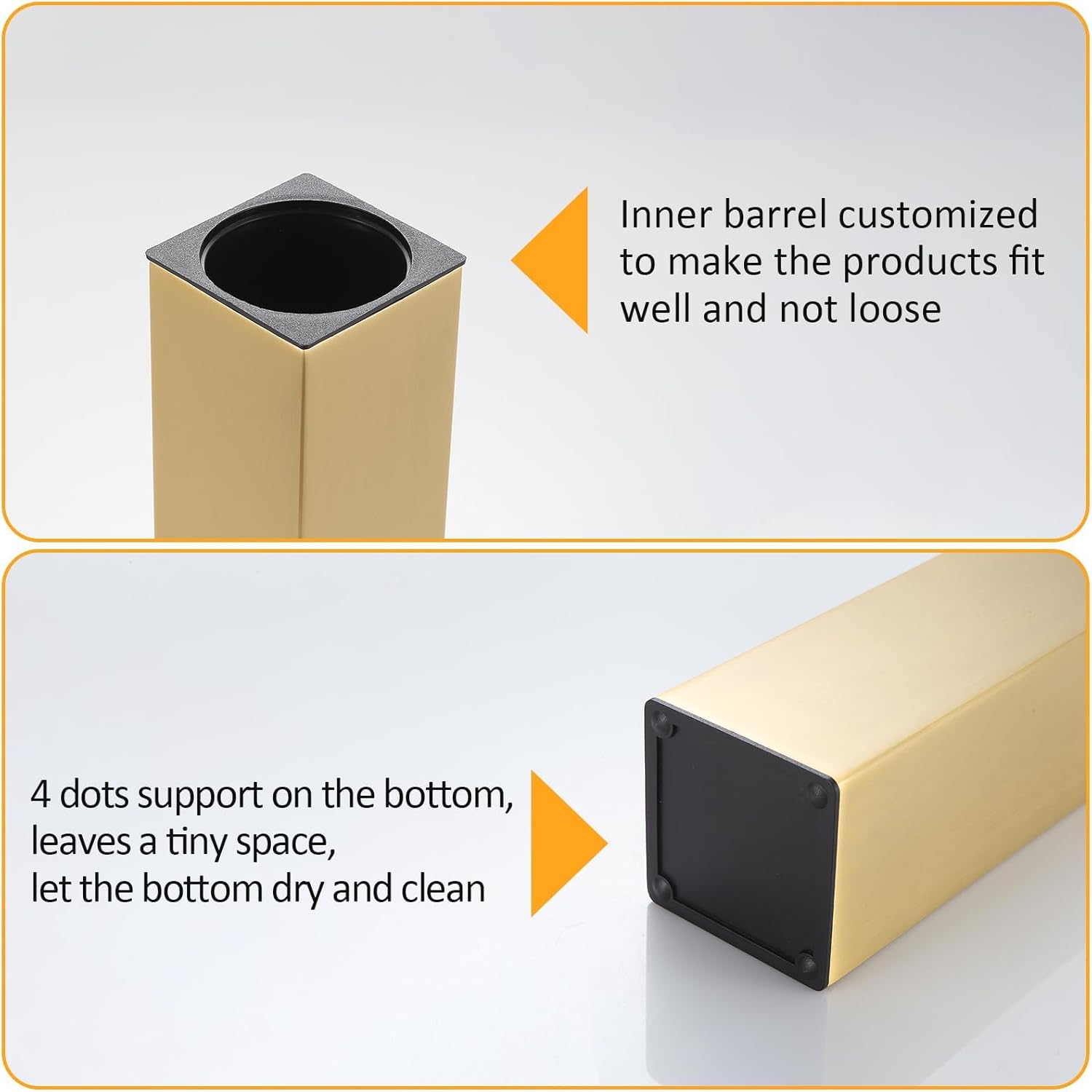 BGL Standing Toilet Brush and Holder Brushed Gold Aluminium Toilet Bowl Cleaner Brush and Holder for Bathroom Storage and Organization, Square Design Sturdy and Space Saving
