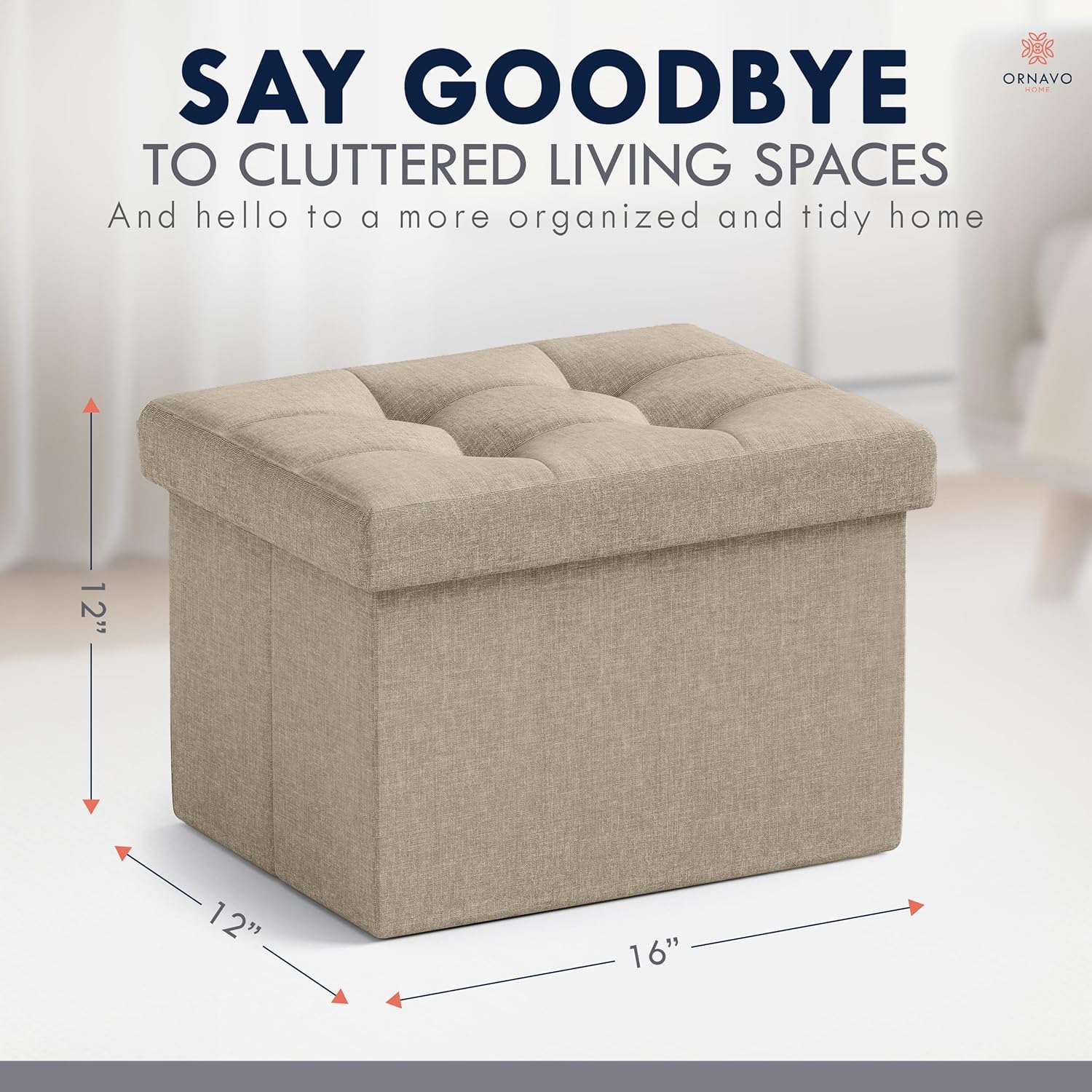Ornavo Home Small Storage Ottoman, Set of 2, Foldable Collapsible Rectangle Linen Ottoman Foot Rest Stool Seat, for Living Room, Bedroom, Home Office, Dorm - 12 x 16 x 12, Taupe