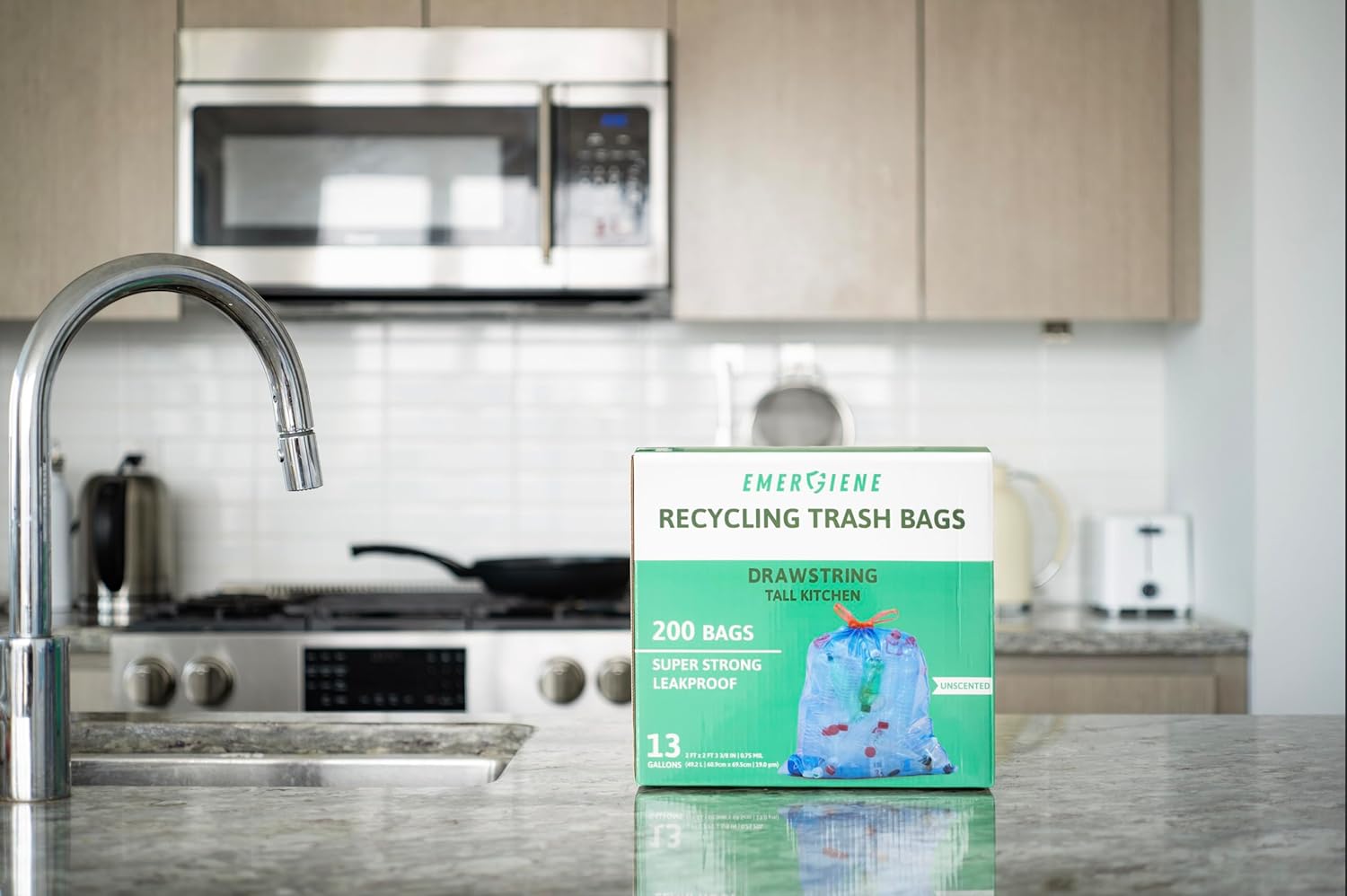 13 Gallon Recycling Trash Bags, 200 Count Drawstring Tall Kitchen Garbage Bags, Pre-Separated, Unscented, Ultra Strong, Leakproof, Sturdy, Translucent Blue