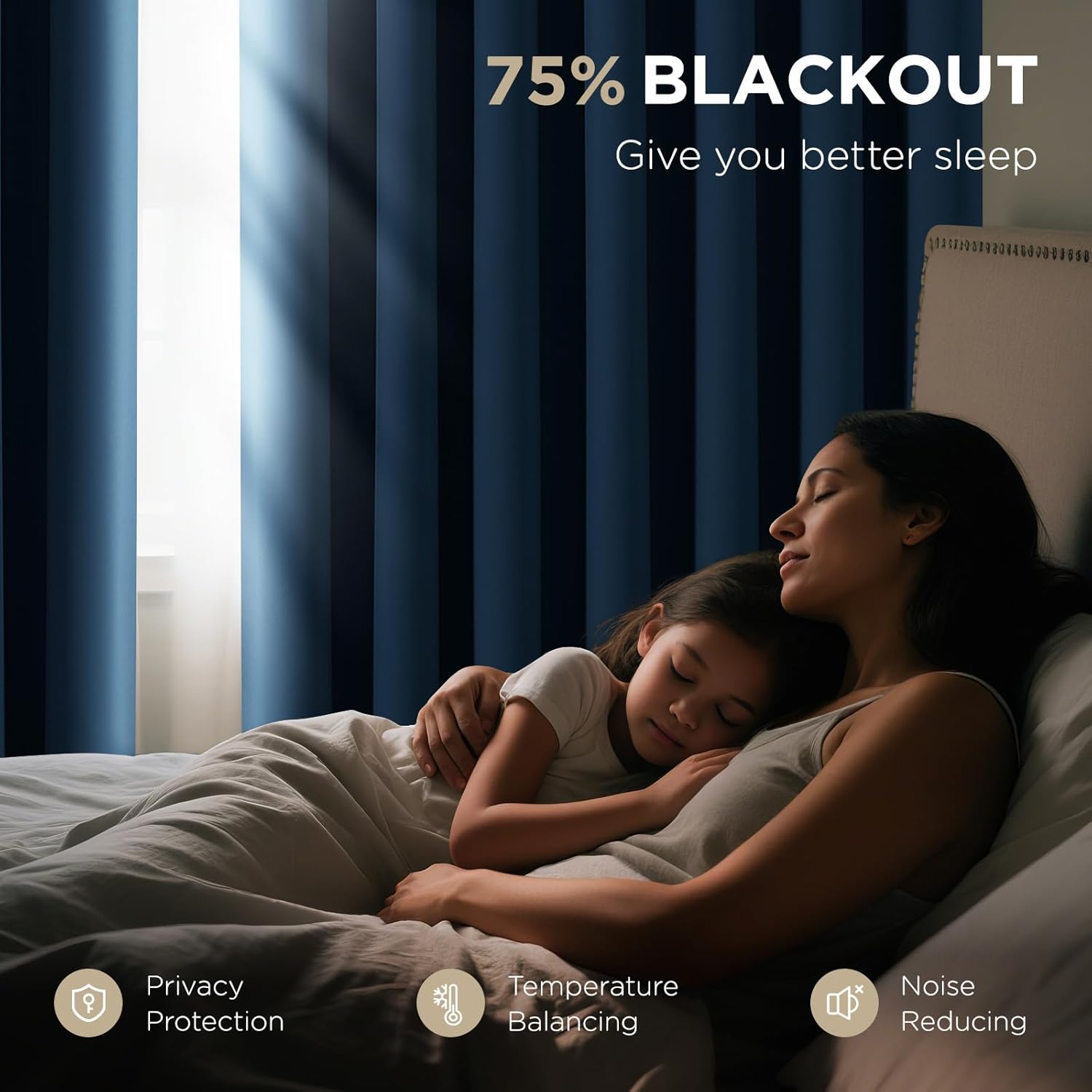 - 【Blackout Performance】Your go-to choice for adjusting indoor light! These curtains block over 75% of sunlight and outdoor glare, creating a cozier atmosphere in bedrooms, living rooms, and more. They also provide excellent privacy protection for your home. Pro Tip: Darker-colored curtains offer even better blackout effects.