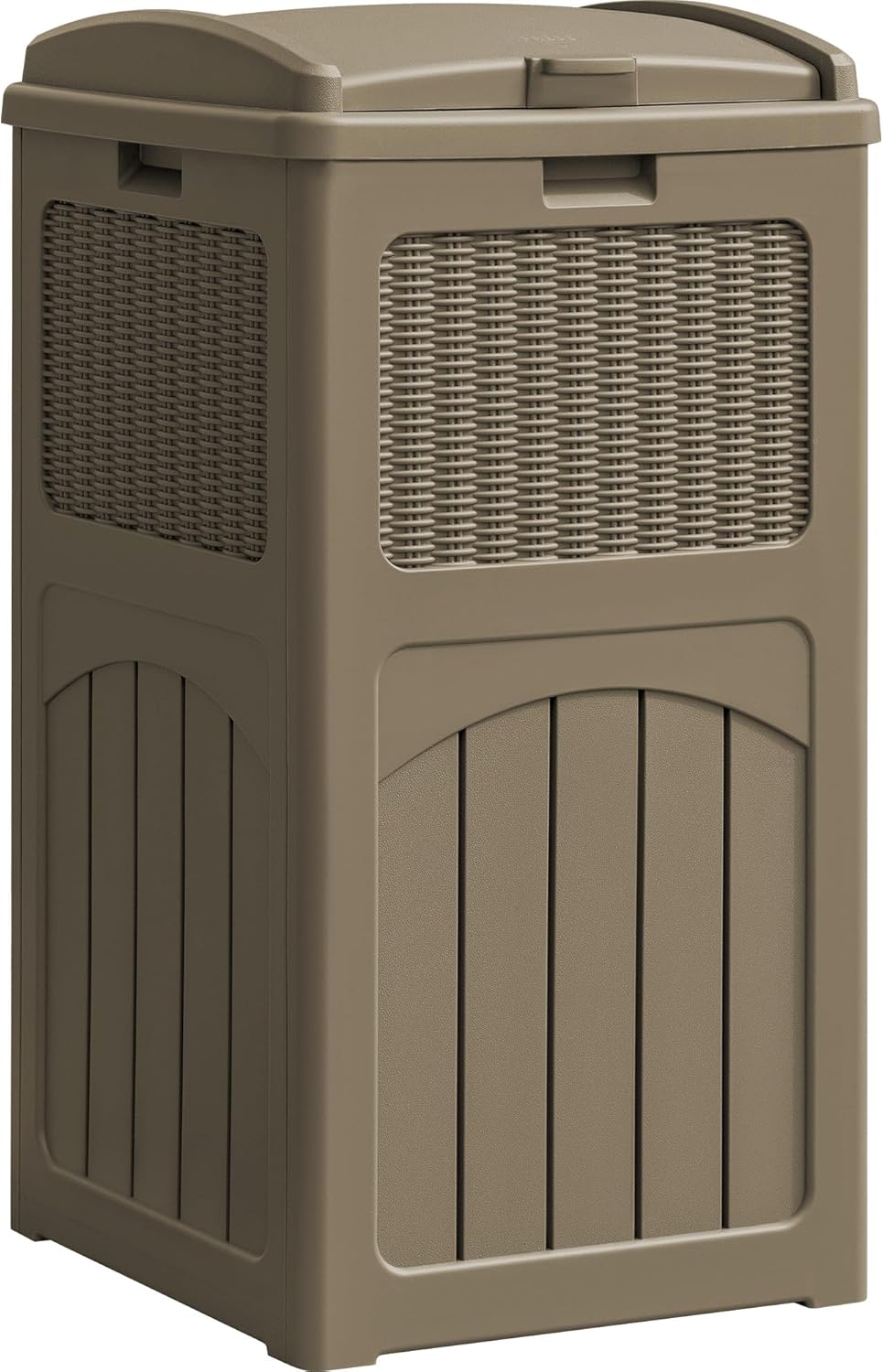 YESHOMY 33 Gallon Resin Outdoor Trash Can with Lid, Hideaway Waterproof Patio Garbage Bin, Coffee
