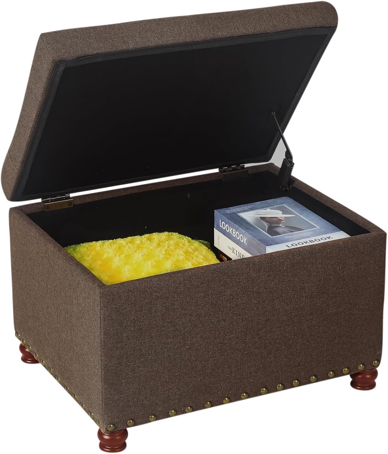 - Classical Design Style: Wood frame, red brown wooden legs and nailhead Trim, tufted lift top makes this ottoman more elegant and noble.