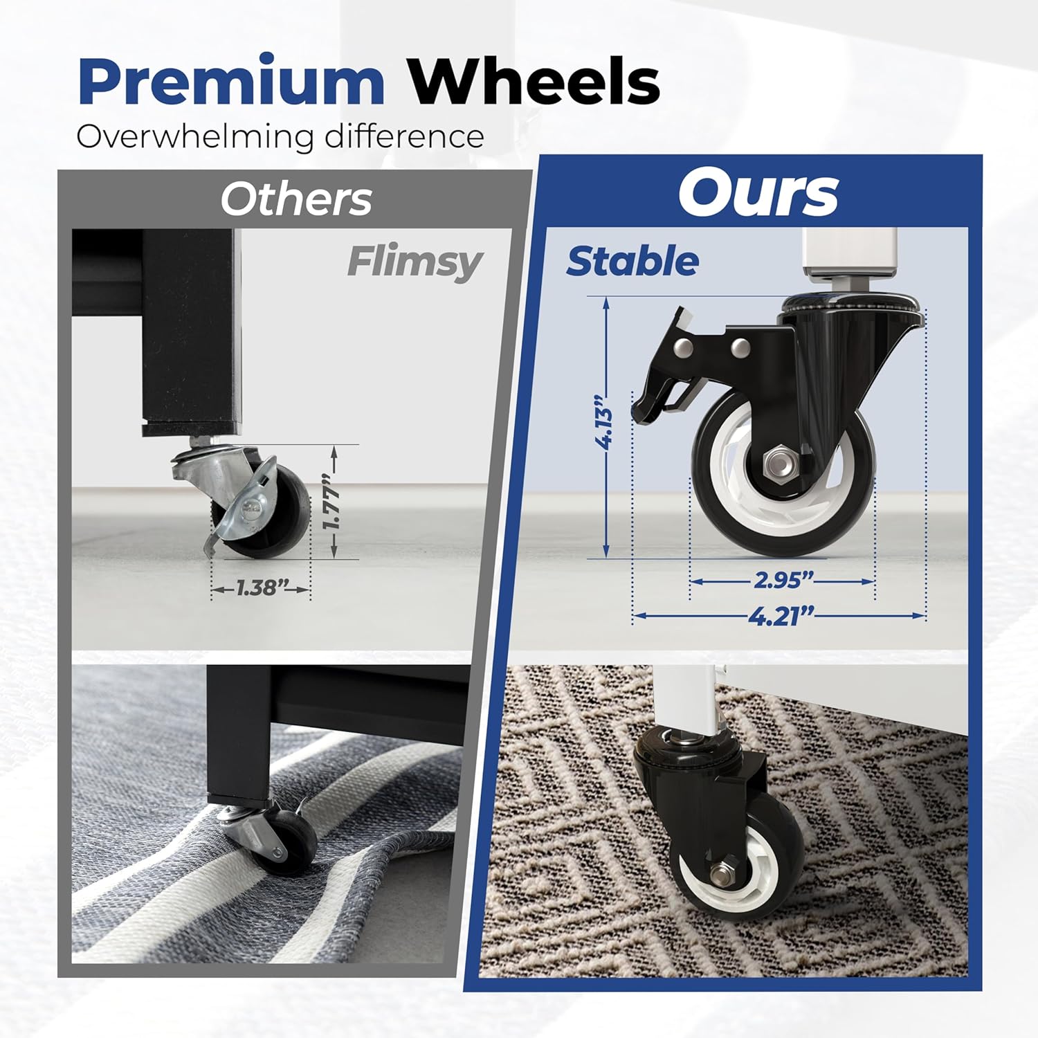 HOMEDANT House White 5-Tier Metal Rolling Cart Shelf Rack Casters Heavy Duty Wheel Shelving Unit Adjustable Utility Storage Shelves Organizer Shelf Kitchen Garage 36.2" W x 16.5" D x 69.5" H 1Pack