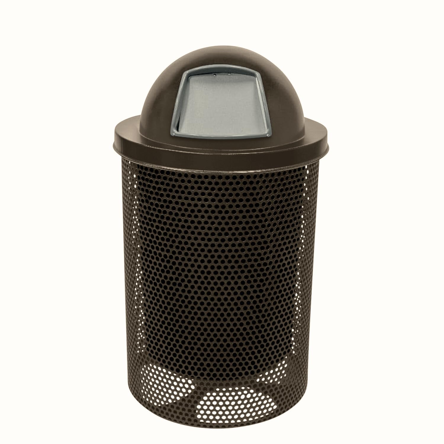 COATEDOUTDOORFURNITURE RDT-P-TXTBRW Heavy Duty Round Trash Receptacle with Dome Top, Liner Included, 32 Gallon, Textured Brown, Made in America