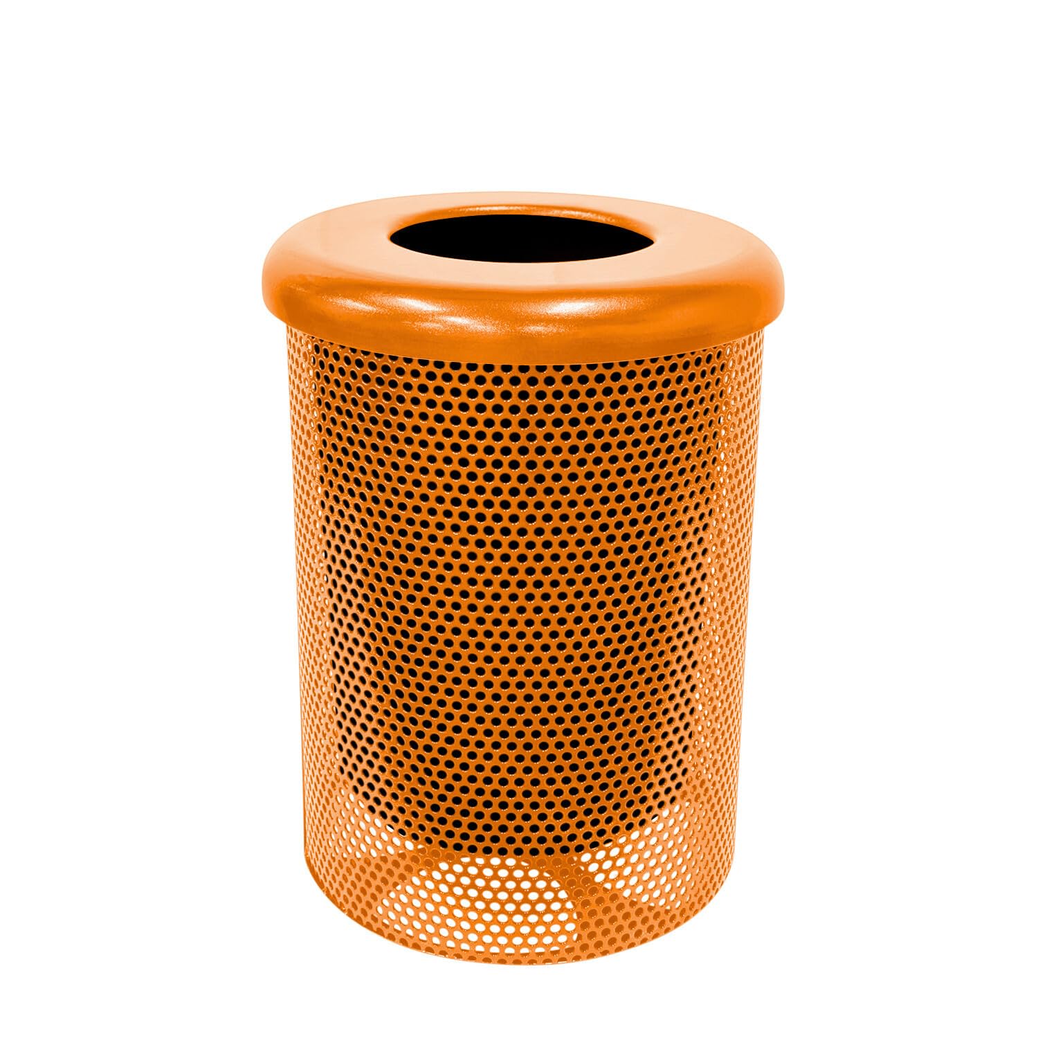 COATEDOUTDOORFURNITURE RFT-P-ORG Heavy Duty Round Trash Receptacle with Flat Top, Liner Included, 32 Gallon, Orange, Made in America