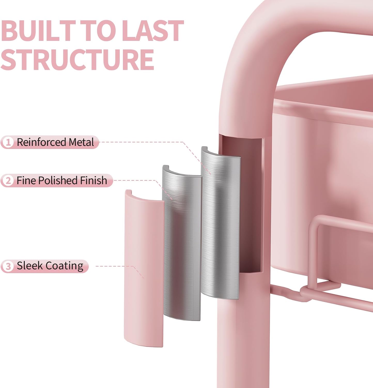 - Durable Heavy-Duty Metal Construction – Built to last, this rolling cart features 3 sturdy metal baskets and 4 durable wheels. The sleek, coated metal poles ensure long-lasting use, making it ideal for heavy-duty storage in any room, including as a bathroom cart or pantry organizer.