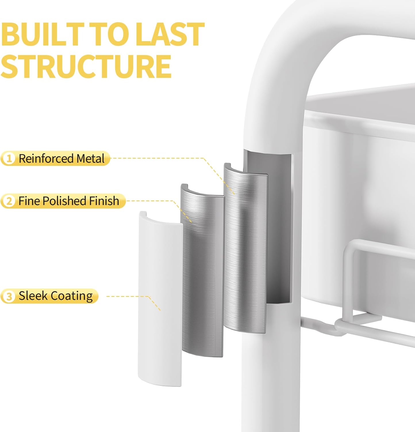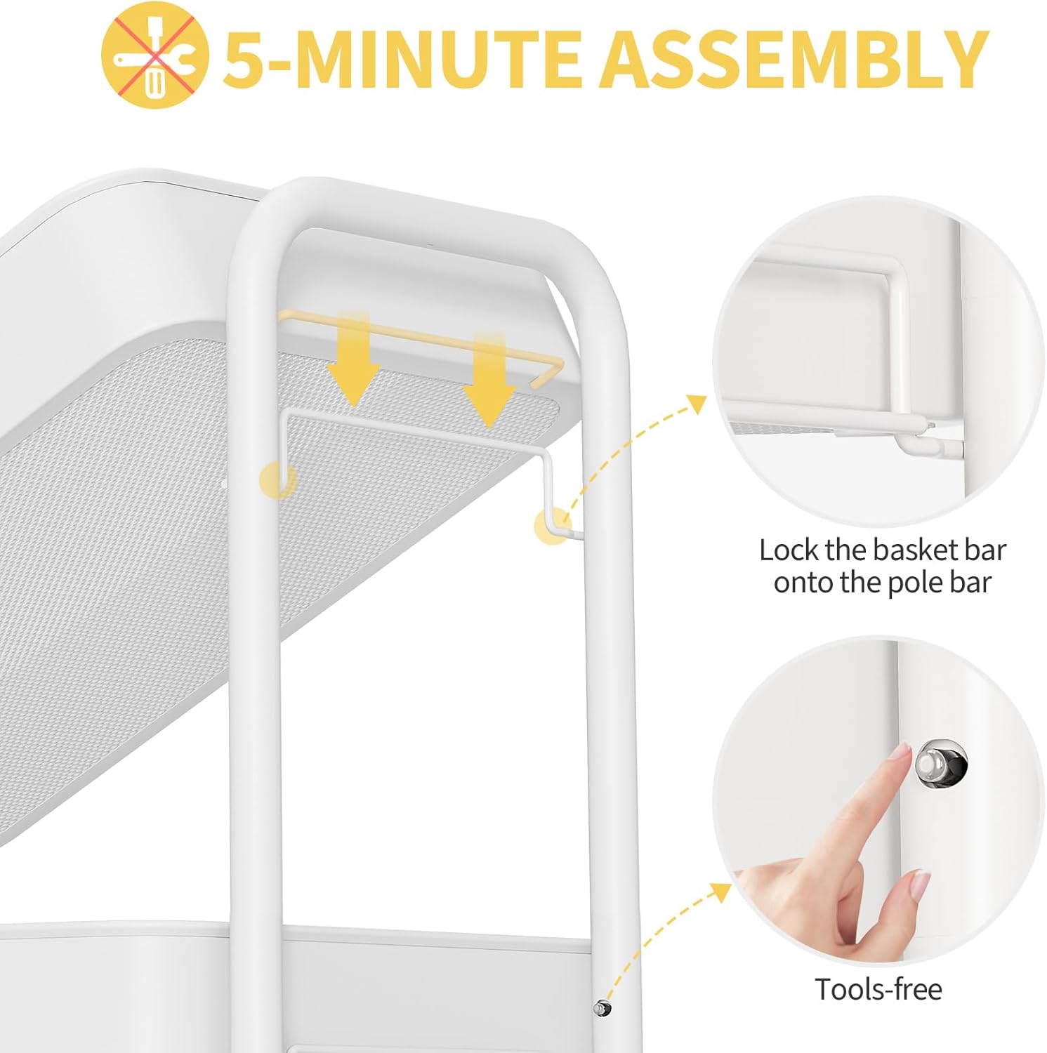 - Durable Heavy-Duty Metal Construction – Built to last, this rolling cart features 3 sturdy metal baskets and 4 durable wheels. The sleek, coated metal poles ensure long-lasting use, making it ideal for heavy-duty storage in any room, including as a bathroom cart or pantry organizer.