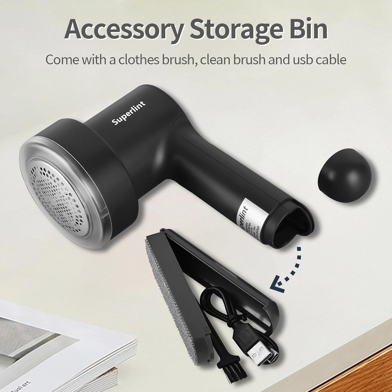 SUPER LINT Electric Fabric Shaver Electrostatic Brush, LED Display, 3-Speeds, Rechargeable Sweater Shavers to Remove Pilling for Clothing, Couch, Furniture, Black