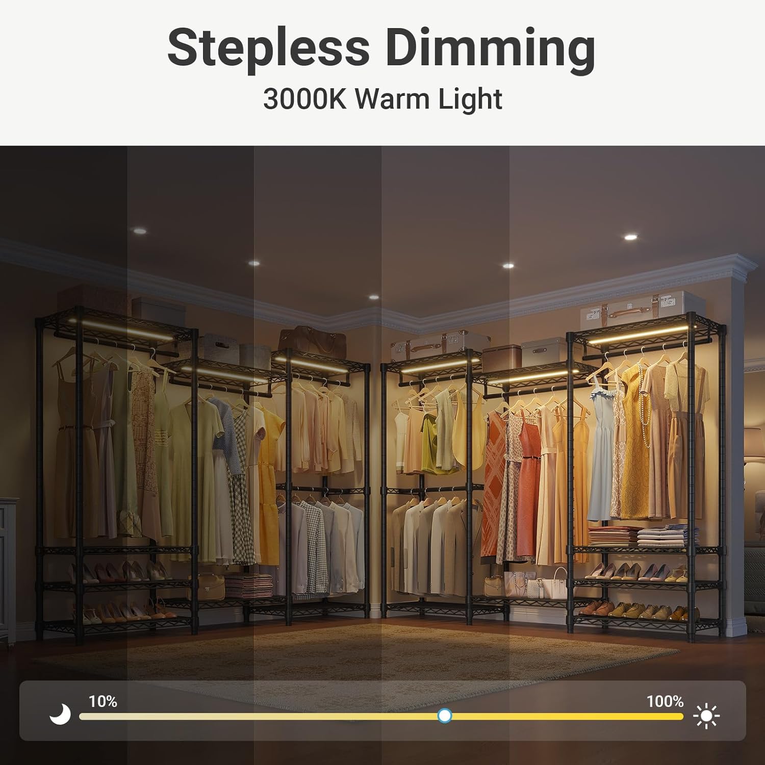 VIPEK V5LC Garment Rack Heavy Duty Covered Clothes Rack with Dimmable LED Lights, 3000K Warm White, Portable Closet Wardrobe Freestanding Clothing Rack for Hanging Clothes, Black Rack with Grey Cover