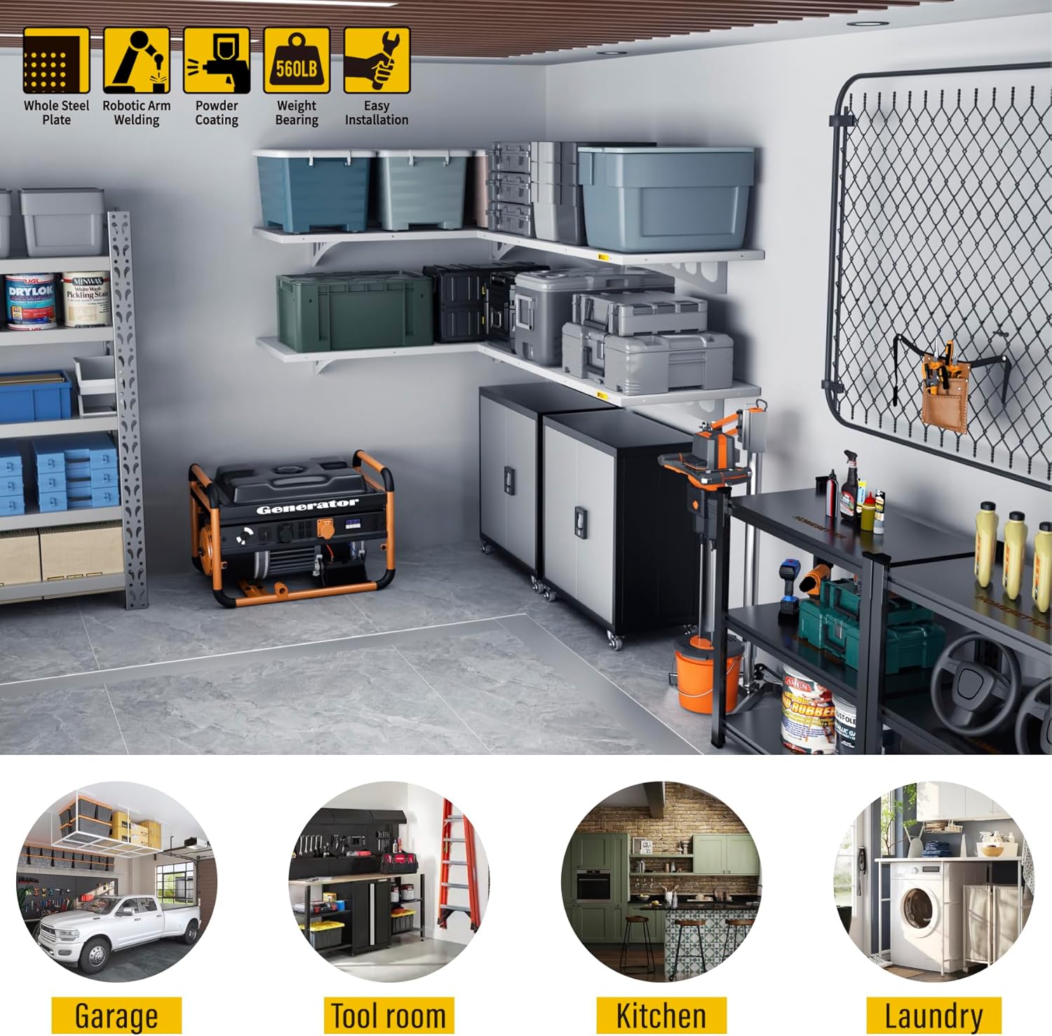 - STABLE AND SAFE: The storage rack is reinforced and safely designed for each connecting pivot point, abandoning the simple and rough wire mesh frame, using the whole piece of perforated steel plate molded in one piece, the whole is solid and beautiful, with a single piece of safe load-bearing capacity up to 280 pounds; allows you to organize and categorize messy and scattered items in an orderly manner, expanding your use of the space and making your garage/storage room more neat and tidy, perfect for walls in garages, storerooms, living rooms, kitchens, and other indoor spaces